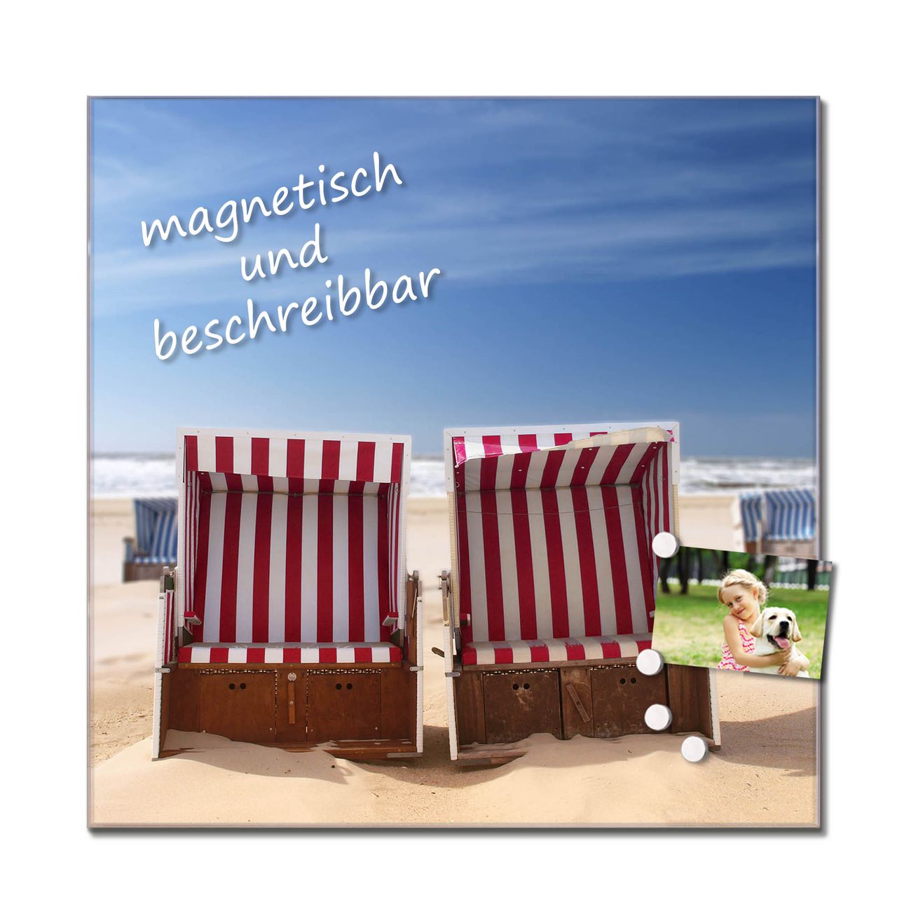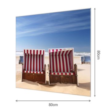 Unsere einzigartigen Glasbilder im Querformat von banjado mit Motiv Strandkörbe sind der absolute Hingucker! Unsere Banjado Glasbilder sind sehr begehrt, weil sie top verarbeitet sind und sich ganz leicht montieren lassen. Schon mit wenigen Handgriffen hängen sie an der Wand und strahlen mit höchster brillianz. Durch die Ramenlose Herstellung schwebt das Echtglasbild förmlich an der Wand. Das Motiv erscheint besonders ausdrucksstark und hochwertig und ist hinter dem Echtglas geschützt.