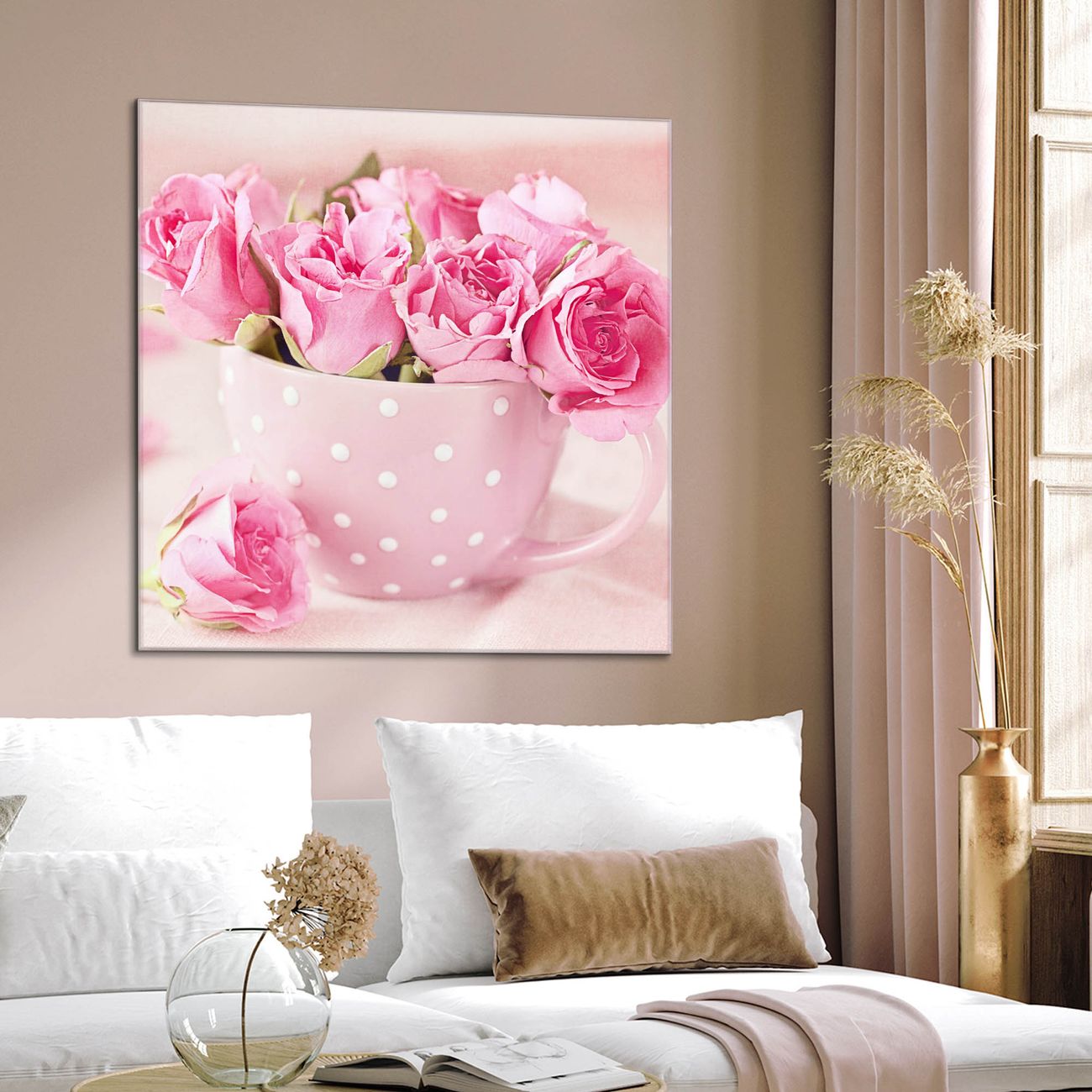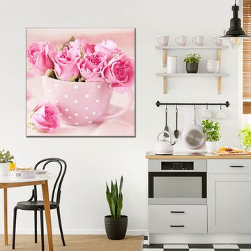 Quadratisches Wandbild aus Glas Tasse Voll Rosen