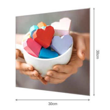 Unsere einzigartigen Glasbilder im Querformat von banjado mit Motiv Tasse voller Herzen sind der absolute Hingucker! Unsere Banjado Glasbilder sind sehr begehrt, weil sie top verarbeitet sind und sich ganz leicht montieren lassen. Schon mit wenigen Handgriffen hängen sie an der Wand und strahlen mit höchster brillianz. Durch die Ramenlose Herstellung schwebt das Echtglasbild förmlich an der Wand. Das Motiv erscheint besonders ausdrucksstark und hochwertig und ist hinter dem Echtglas geschützt.