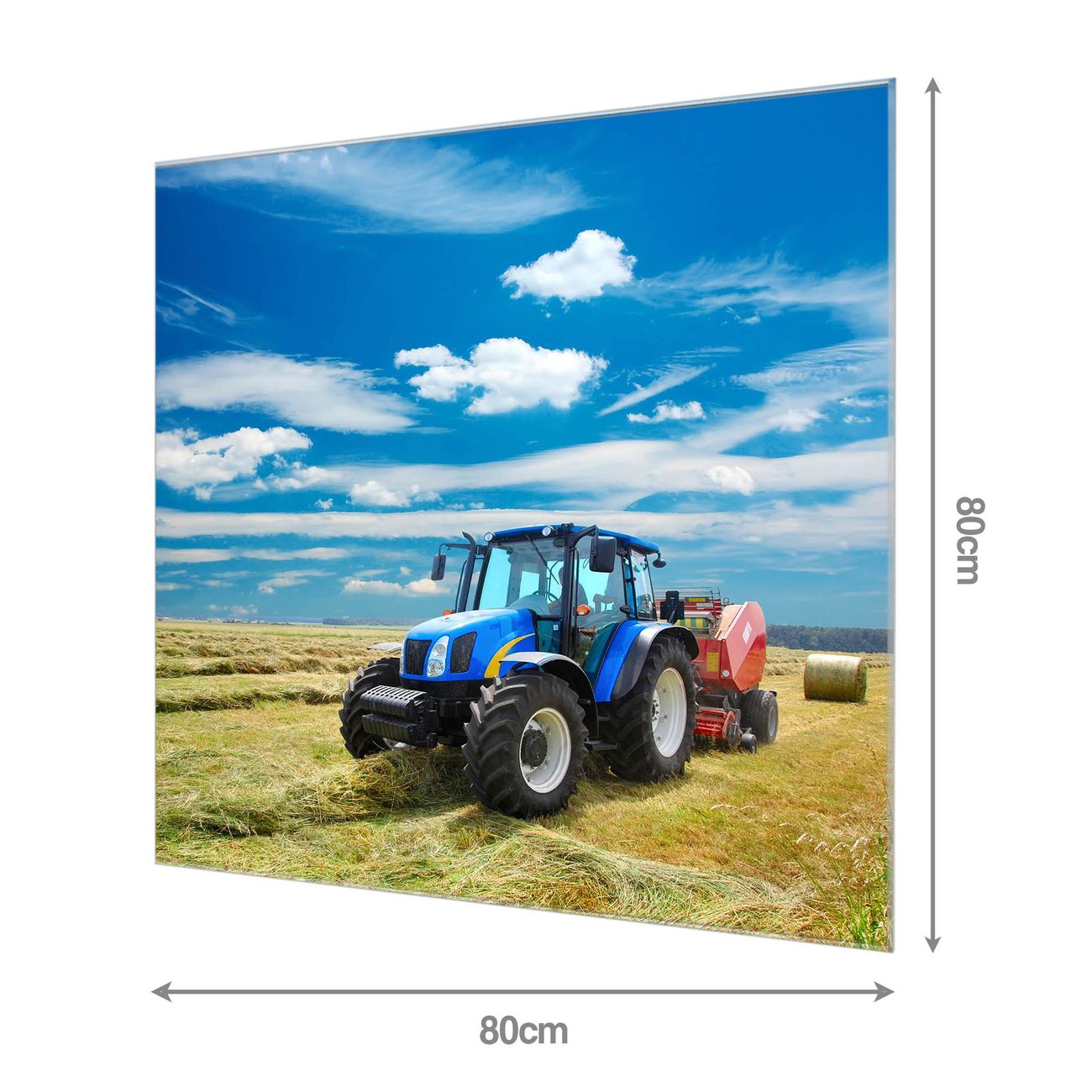 Unsere einzigartigen Glasbilder im Querformat von banjado mit Motiv Traktor sind der absolute Hingucker! Unsere Banjado Glasbilder sind sehr begehrt, weil sie top verarbeitet sind und sich ganz leicht montieren lassen. Schon mit wenigen Handgriffen hängen sie an der Wand und strahlen mit höchster brillianz. Durch die Ramenlose Herstellung schwebt das Echtglasbild förmlich an der Wand. Das Motiv erscheint besonders ausdrucksstark und hochwertig und ist hinter dem Echtglas geschützt.