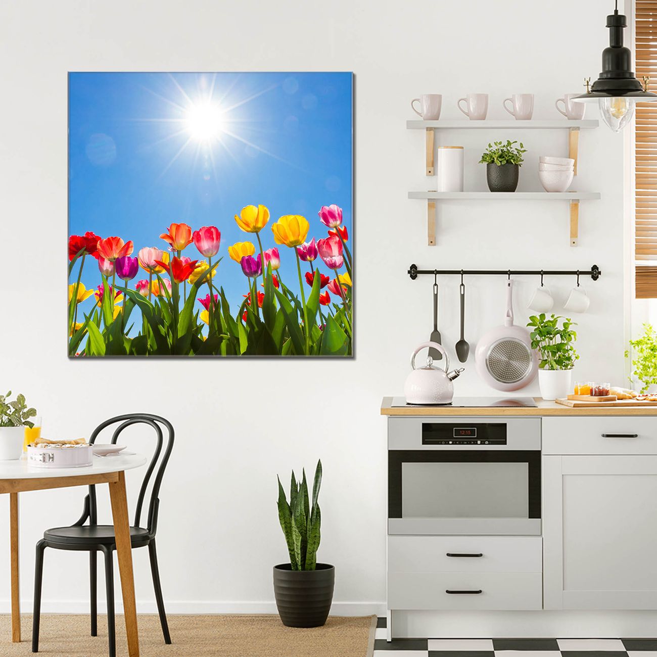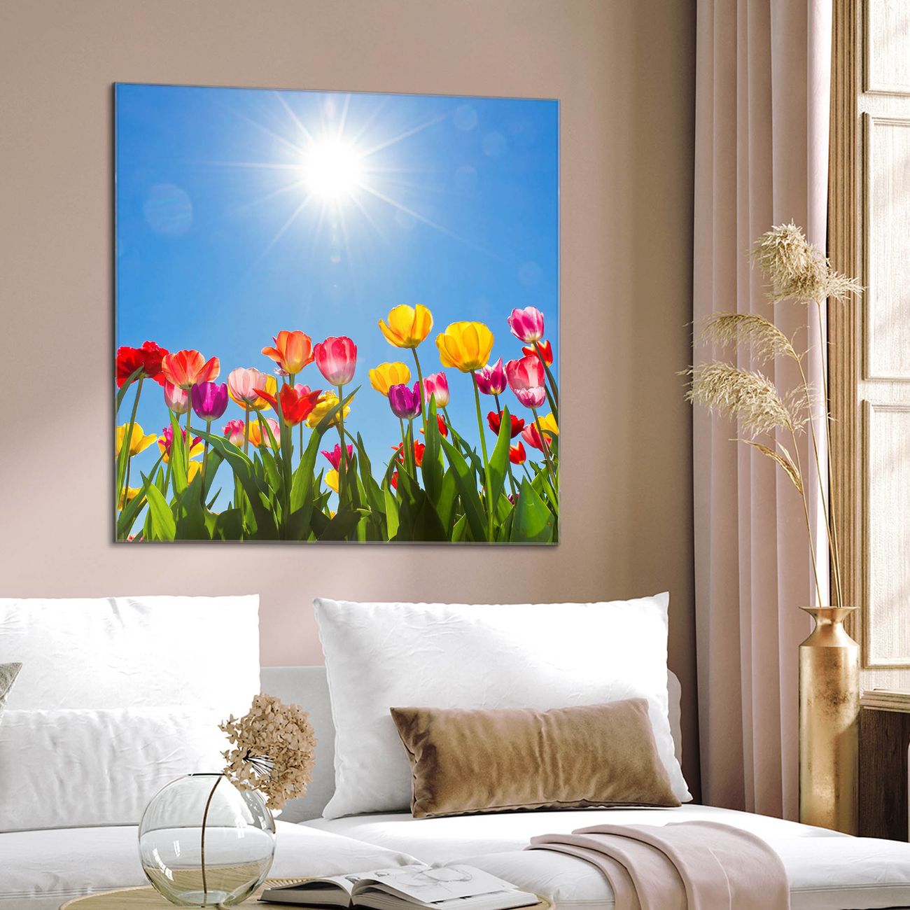 Quadratisches Wandbild aus Glas Tulpenmeer