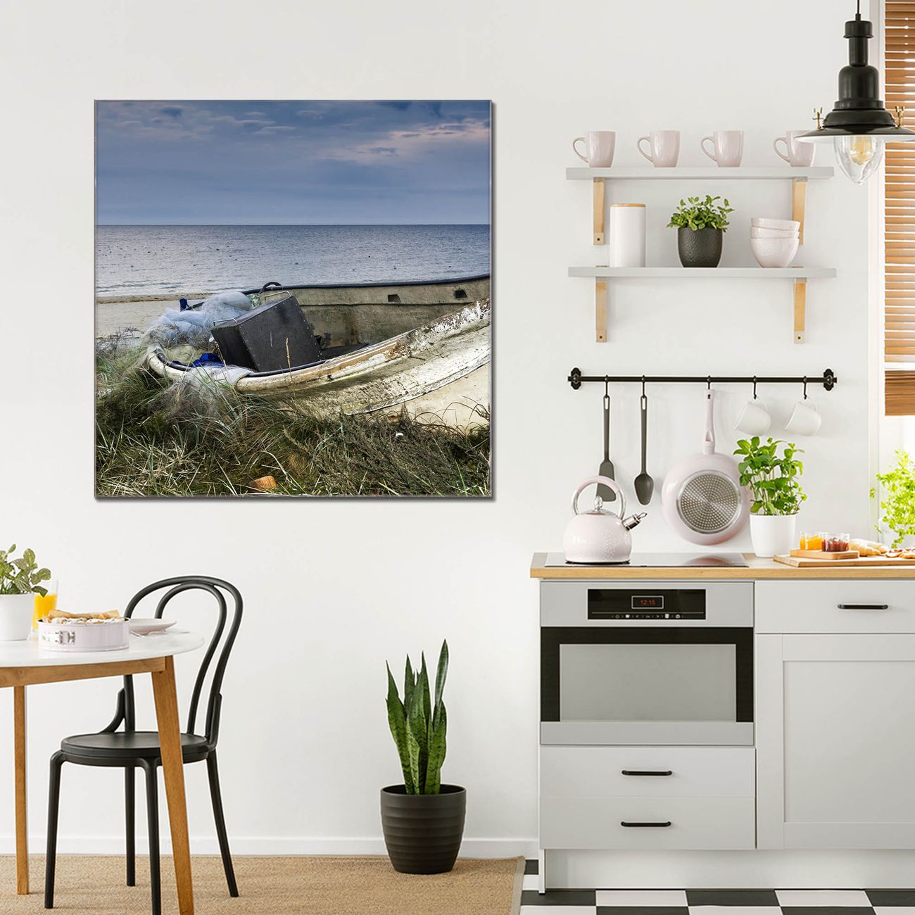 Quadratisches Wandbild aus Glas Vergessenes Fischerboot