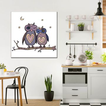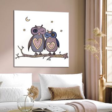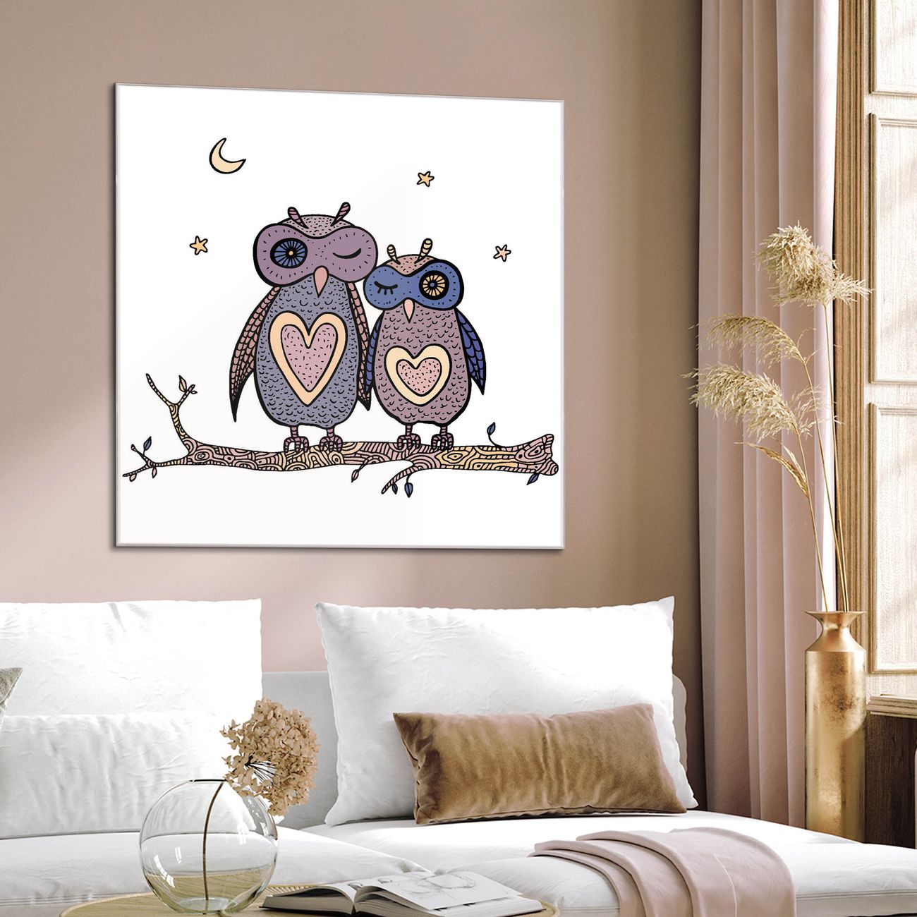 Quadratisches Wandbild aus Glas Verliebte Eulen