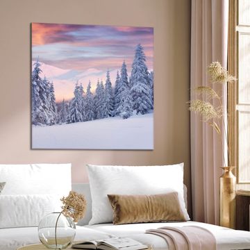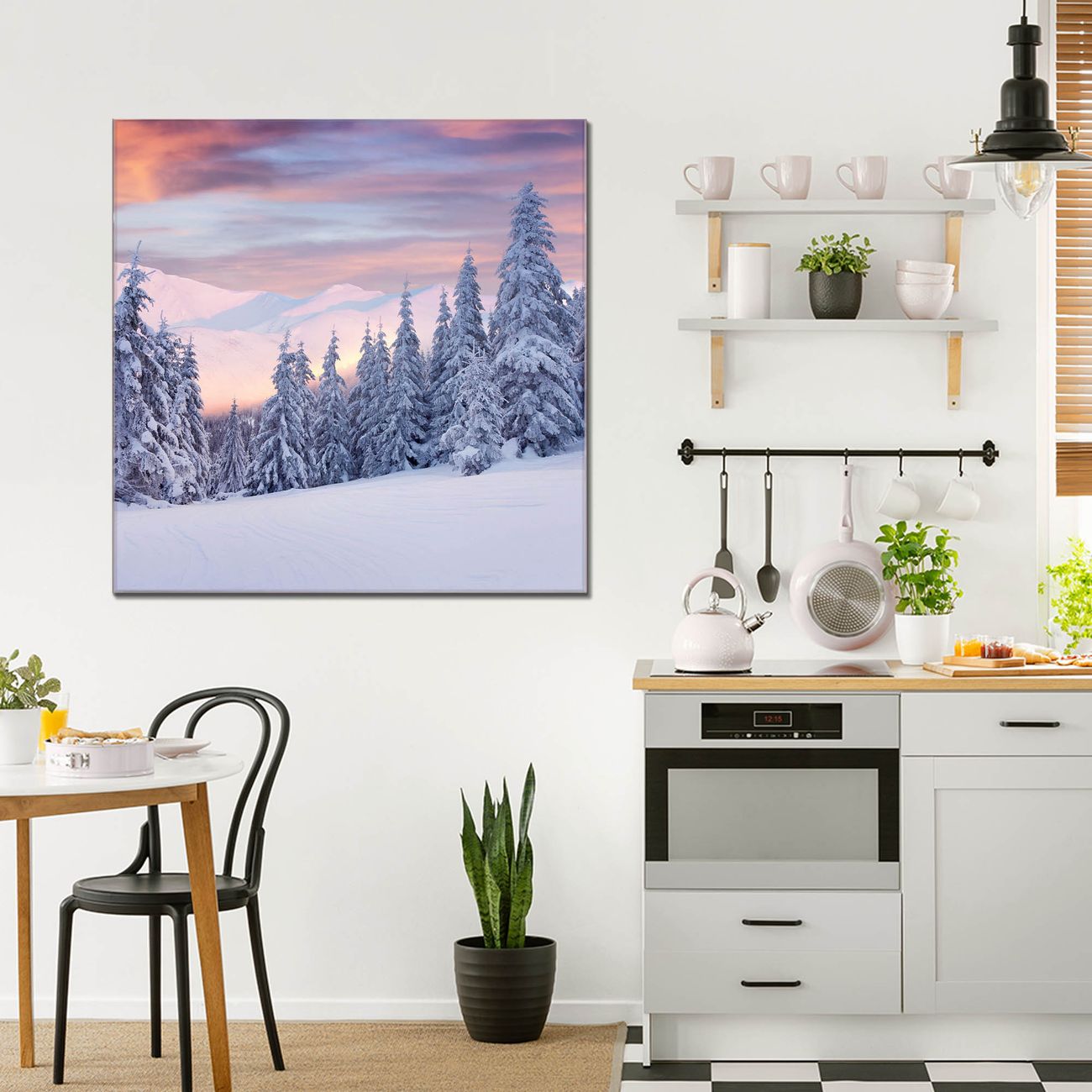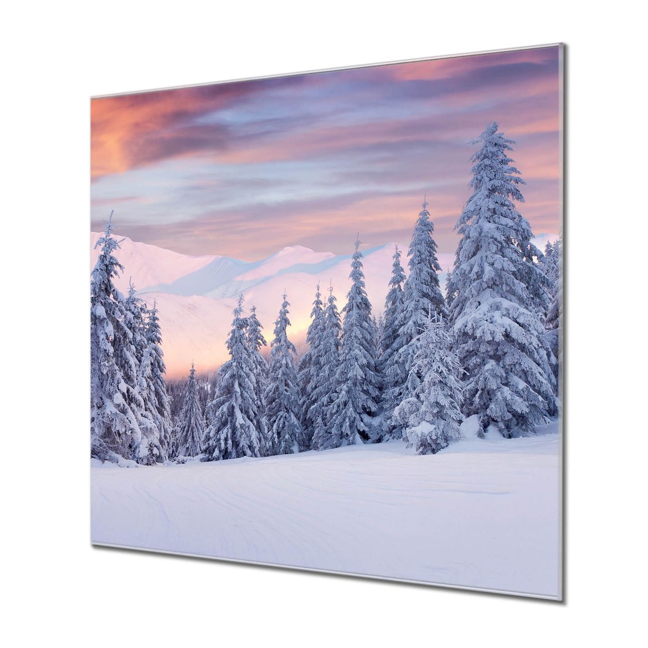 Quadratisches Wandbild aus Glas Verschneite Berge