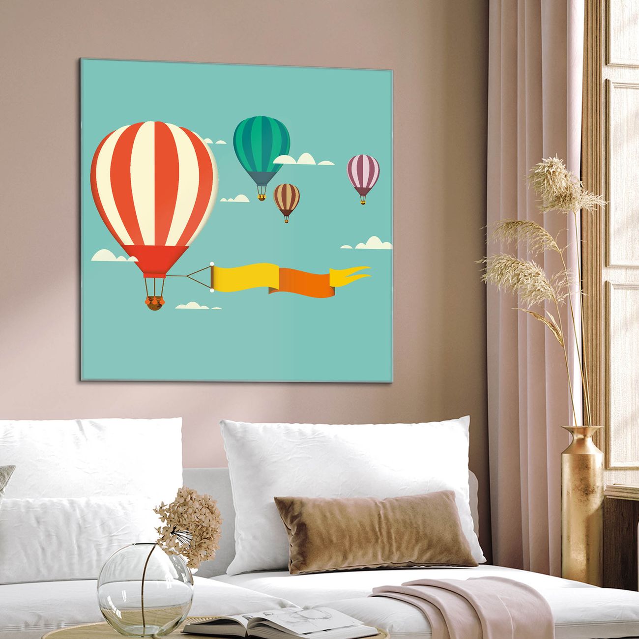 Unsere einzigartigen Glasbilder im Querformat von banjado mit Motiv Vier Ballons sind der absolute Hingucker! Unsere Banjado Glasbilder sind sehr begehrt, weil sie top verarbeitet sind und sich ganz leicht montieren lassen. Schon mit wenigen Handgriffen hängen sie an der Wand und strahlen mit höchster brillianz. Durch die Ramenlose Herstellung schwebt das Echtglasbild förmlich an der Wand. Das Motiv erscheint besonders ausdrucksstark und hochwertig und ist hinter dem Echtglas geschützt.