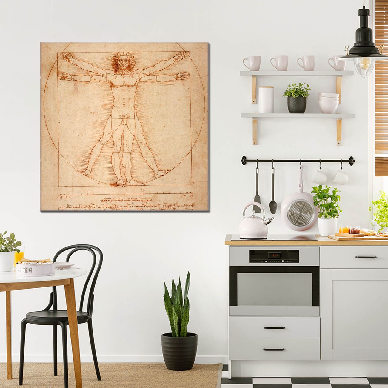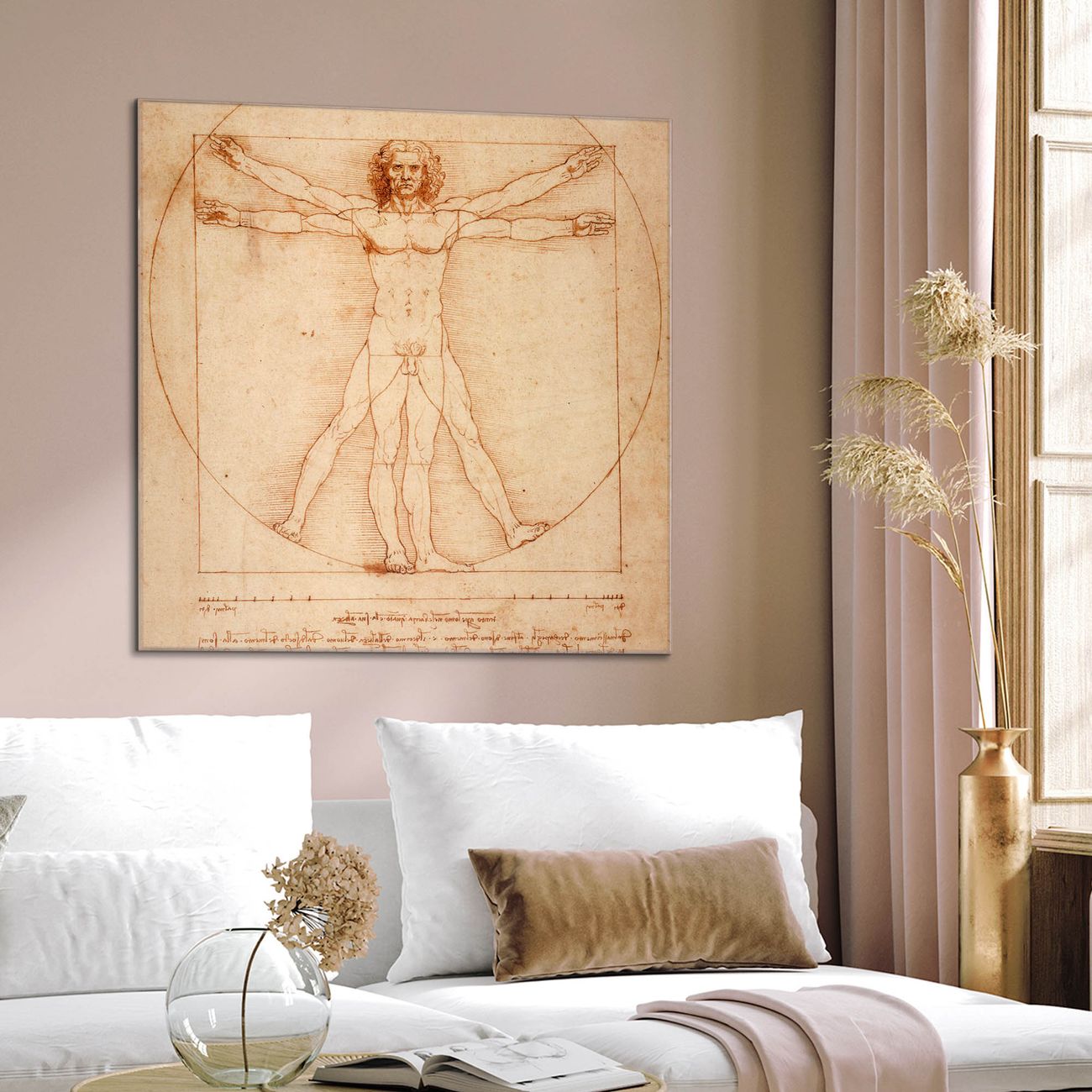 Quadratisches Wandbild aus Glas Vitruvianische Figur