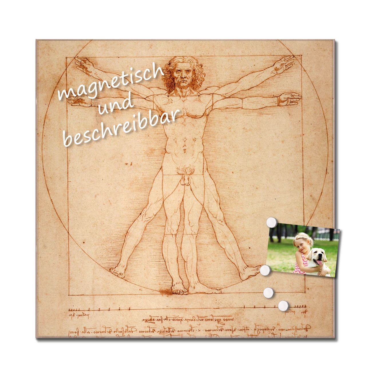 Unsere einzigartigen Glasbilder im Querformat von banjado mit Motiv Vitruvianische Figur sind der absolute Hingucker! Unsere Banjado Glasbilder sind sehr begehrt, weil sie top verarbeitet sind und sich ganz leicht montieren lassen. Schon mit wenigen Handgriffen hängen sie an der Wand und strahlen mit höchster brillianz. Durch die Ramenlose Herstellung schwebt das Echtglasbild förmlich an der Wand. Das Motiv erscheint besonders ausdrucksstark und hochwertig und ist hinter dem Echtglas geschützt.