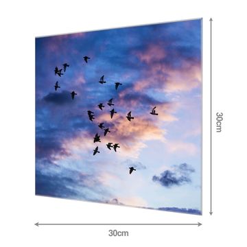 Unsere einzigartigen Glasbilder im Querformat von banjado mit Motiv Vögel am Himmel 3 sind der absolute Hingucker! Unsere Banjado Glasbilder sind sehr begehrt, weil sie top verarbeitet sind und sich ganz leicht montieren lassen. Schon mit wenigen Handgriffen hängen sie an der Wand und strahlen mit höchster brillianz. Durch die Ramenlose Herstellung schwebt das Echtglasbild förmlich an der Wand. Das Motiv erscheint besonders ausdrucksstark und hochwertig und ist hinter dem Echtglas geschützt.