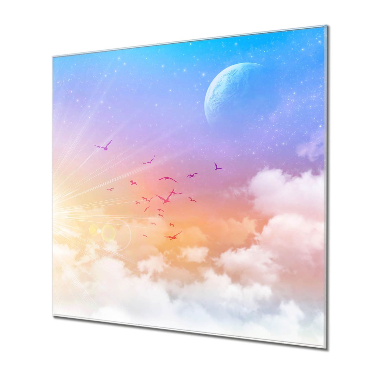 Quadratisches Wandbild aus Glas Vögel am Himmel