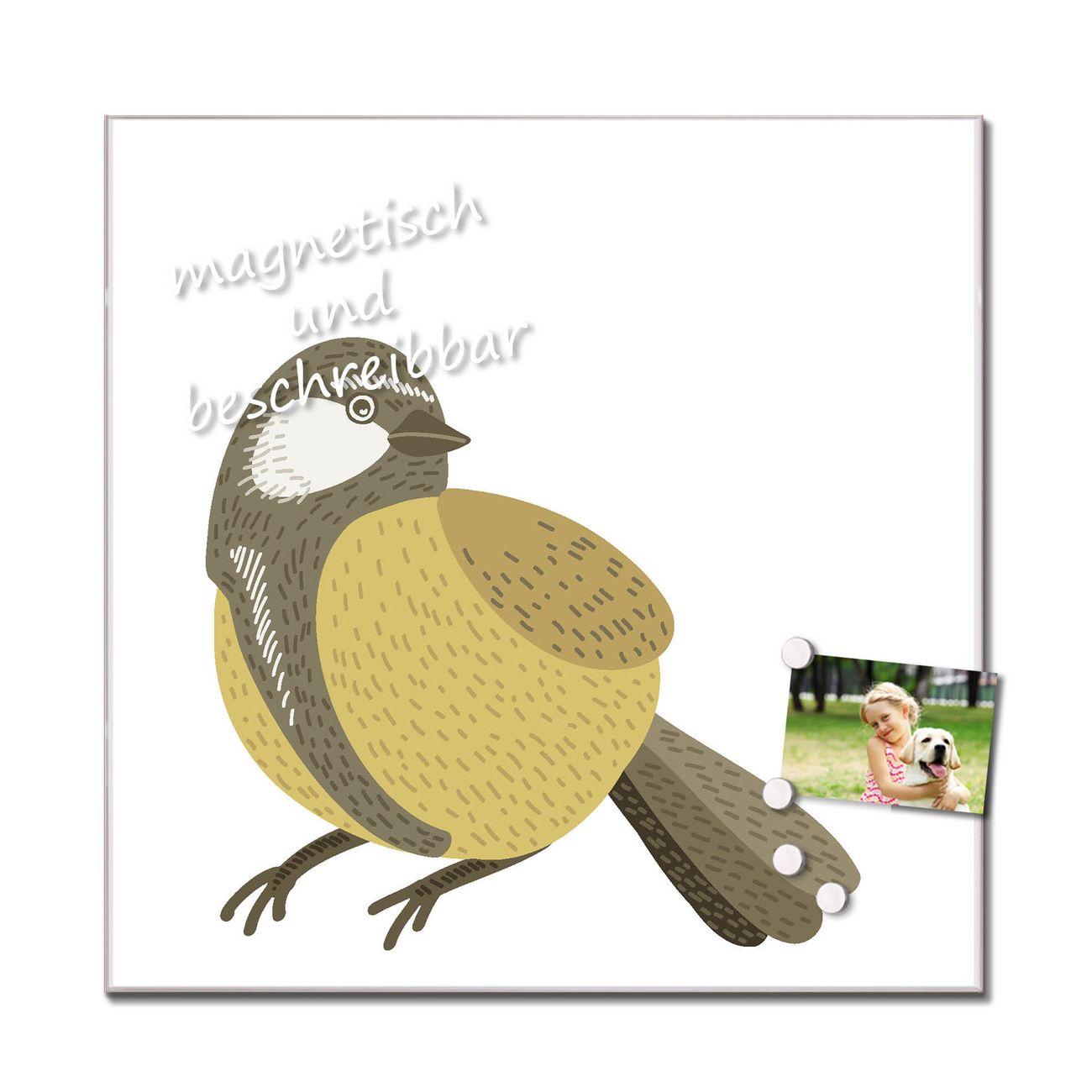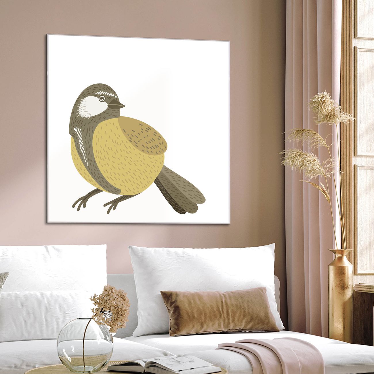 Quadratisches Wandbild aus Glas Vogel mit Sprechblase