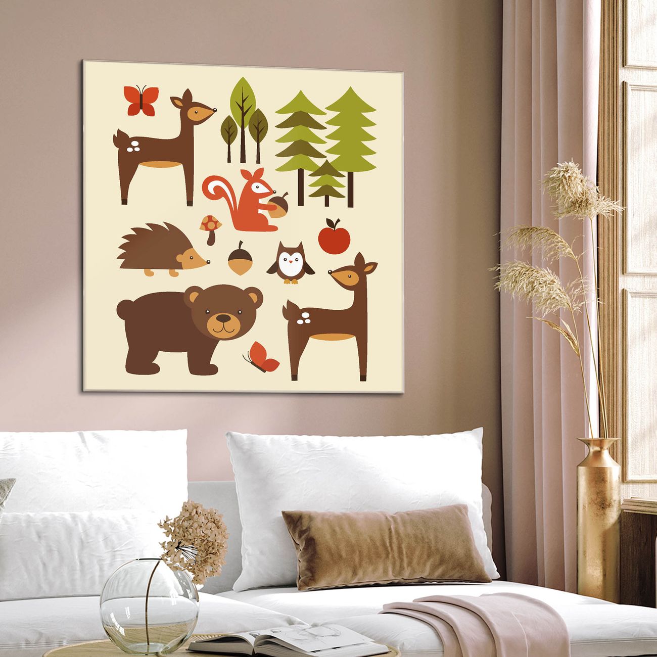 Quadratisches Wandbild aus Glas Waldfreunde