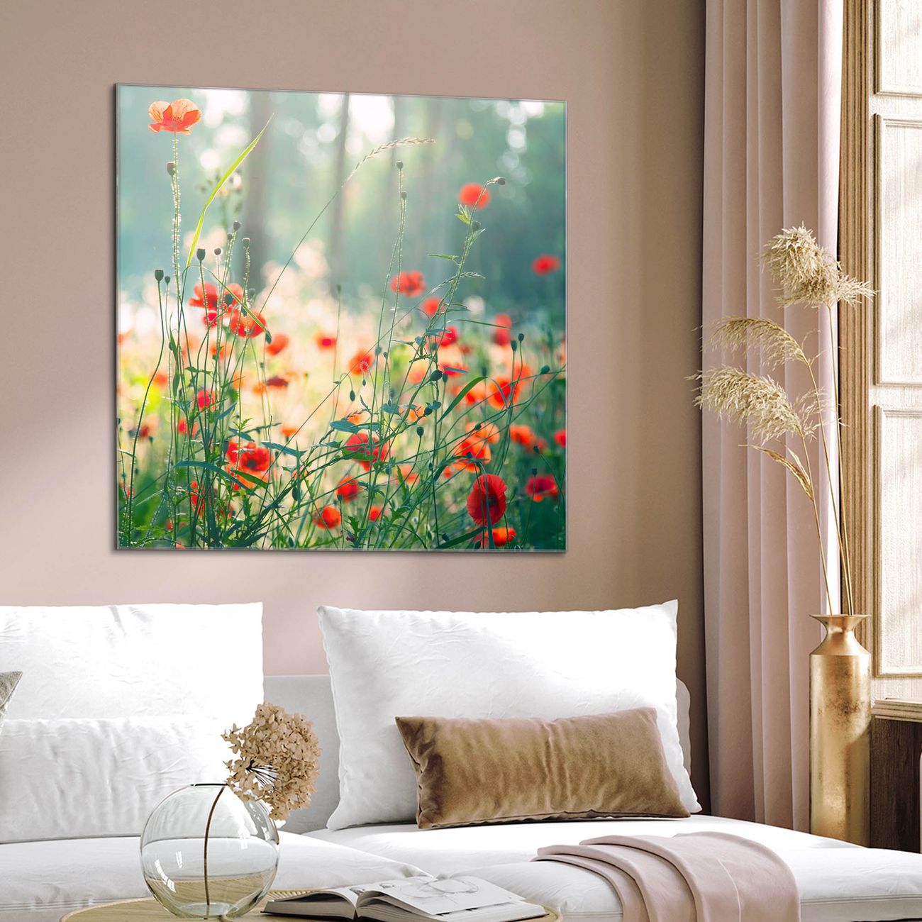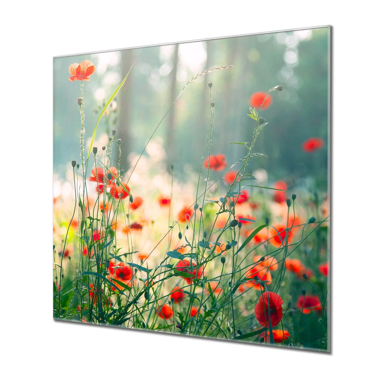 Quadratisches Wandbild aus Glas Waldmohn