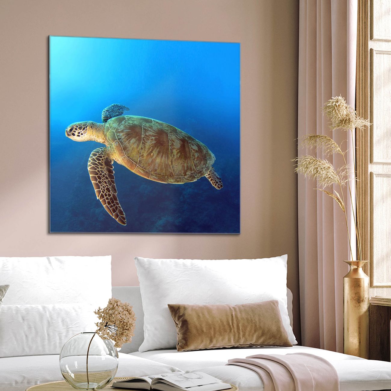 Quadratisches Wandbild aus Glas Wasserschildkröte