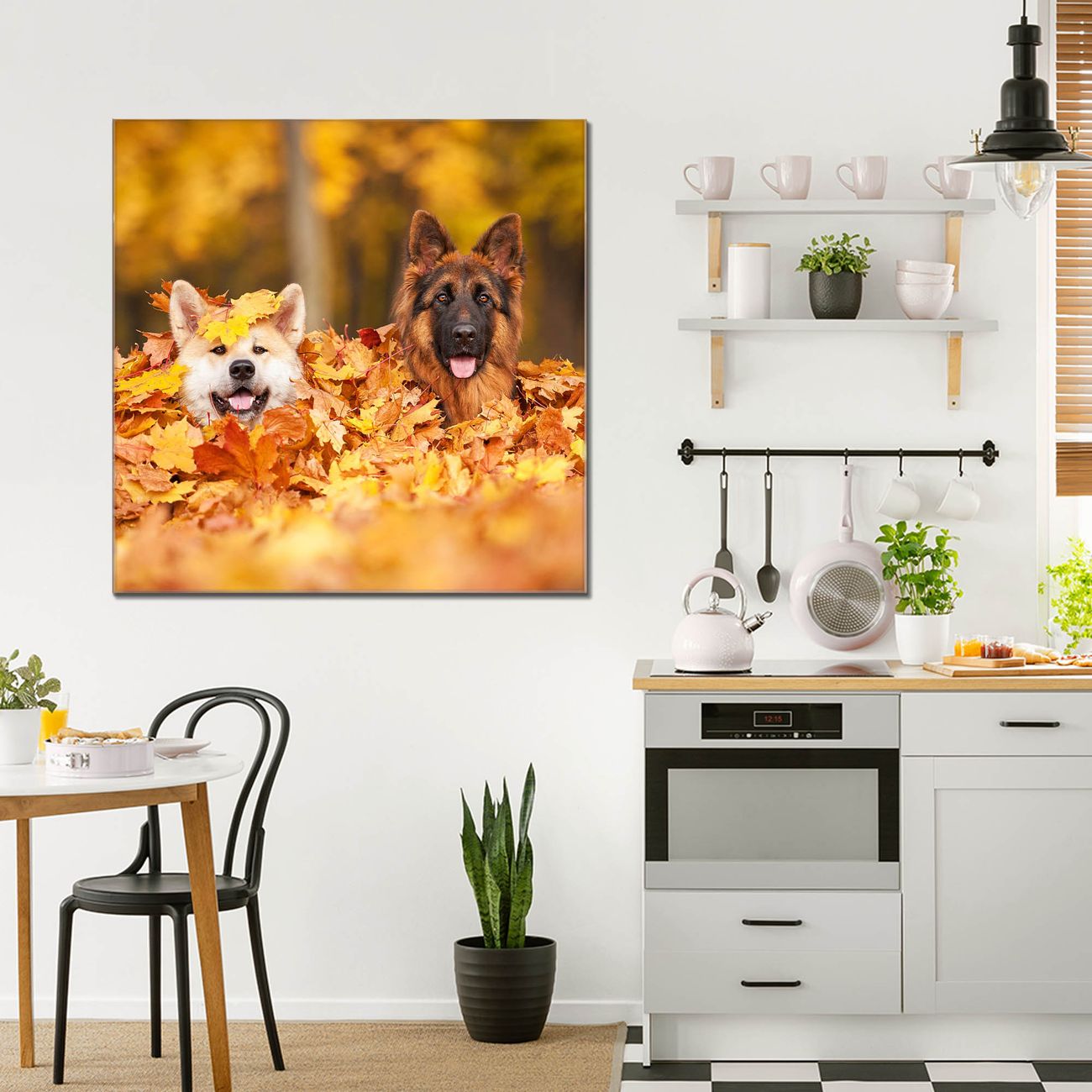 Quadratisches Wandbild aus Glas Wayne und Wanda