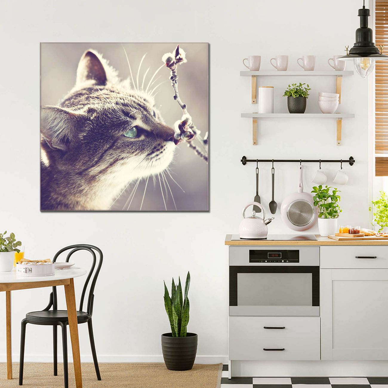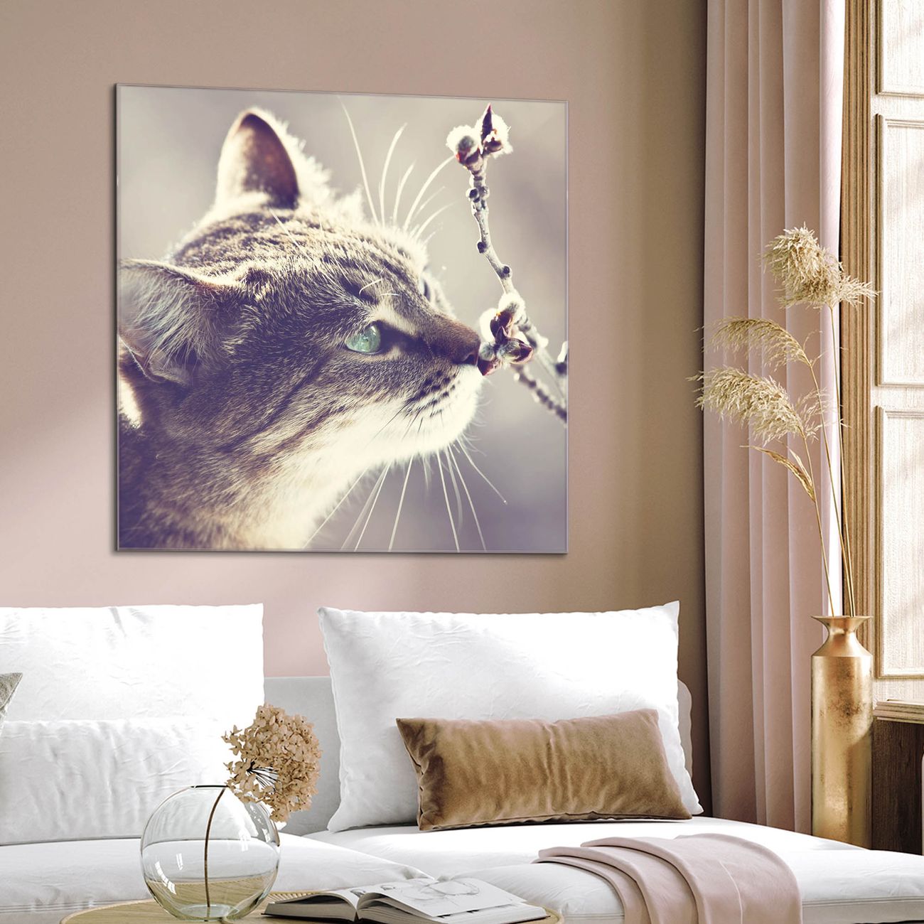 Quadratisches Wandbild aus Glas Weidenkätzchen