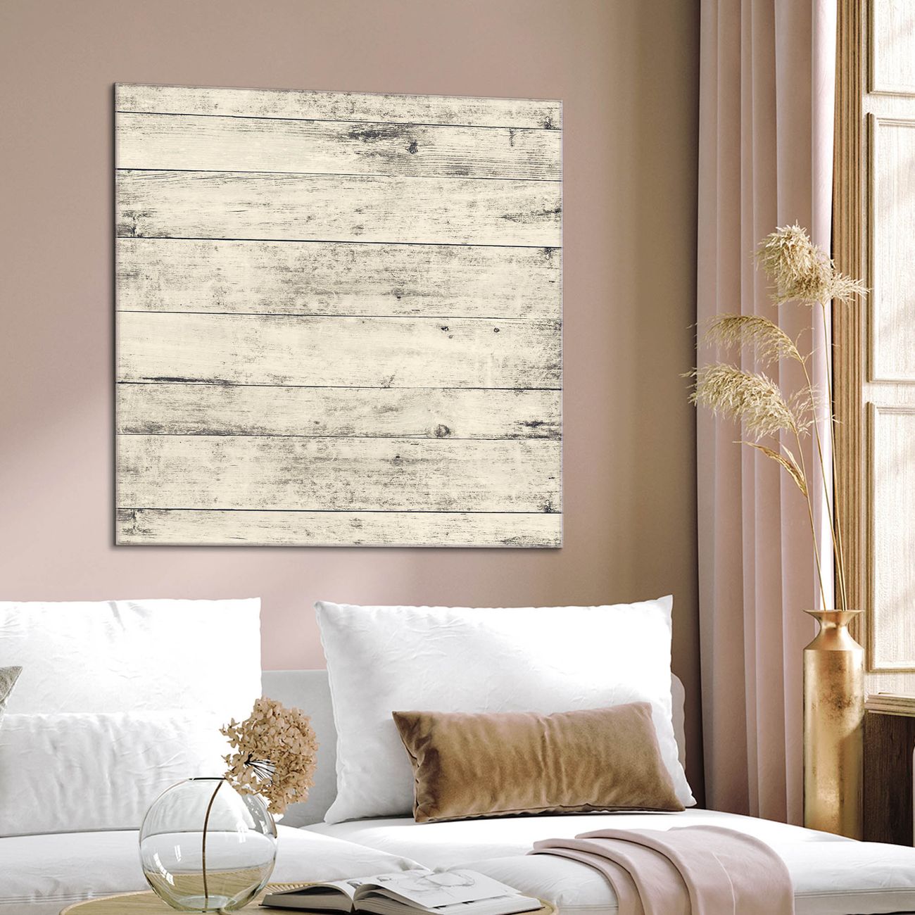 Quadratisches Wandbild aus Glas Weiße Planken H