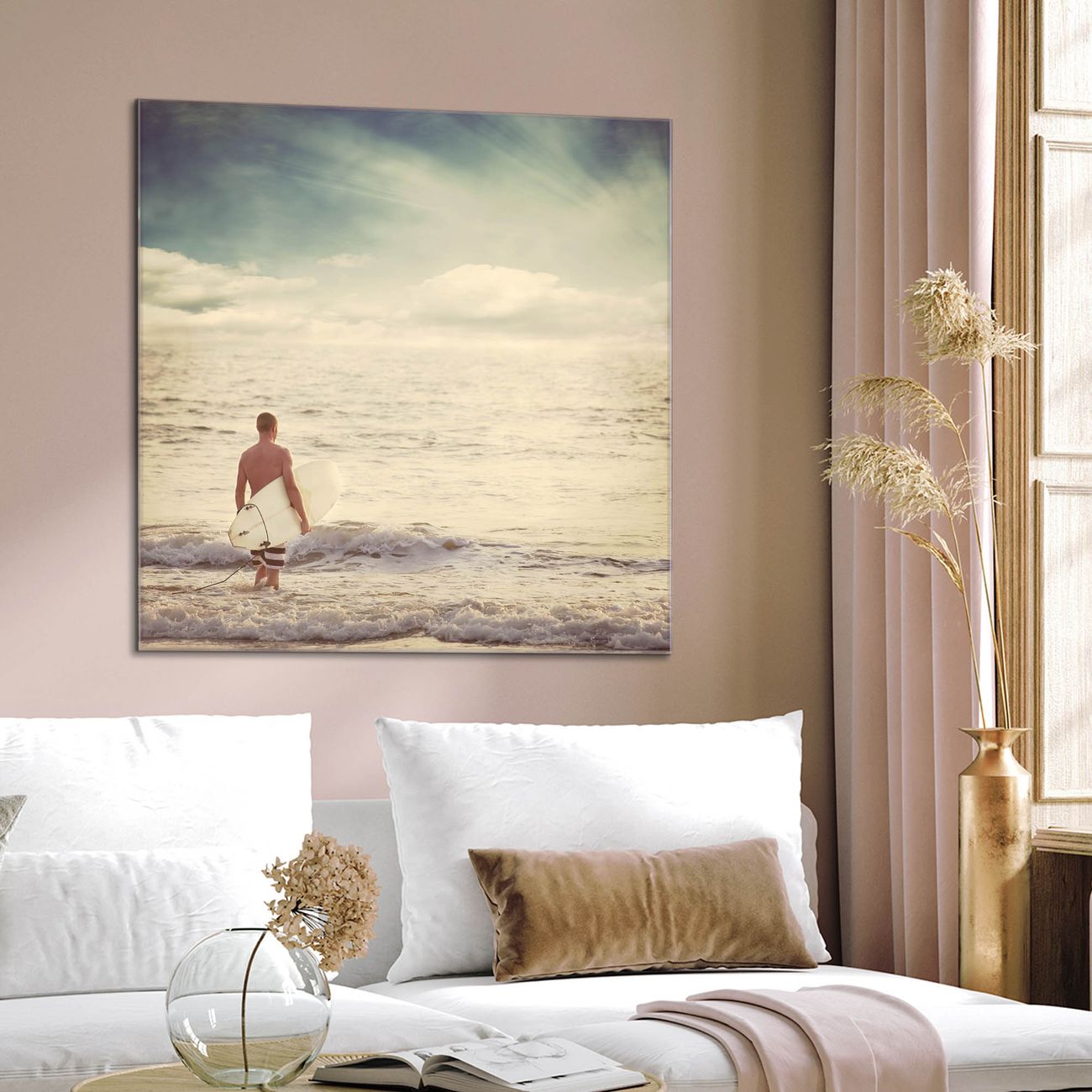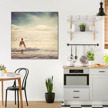 Quadratisches Wandbild aus Glas Wellenreiten Gehen
