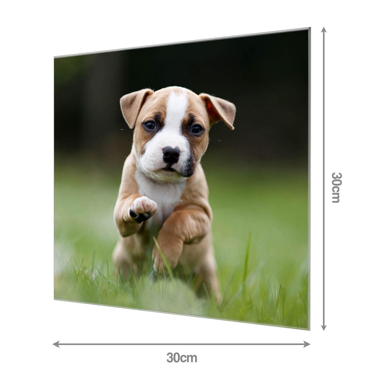 Quadratisches Wandbild aus Glas Welpe im Gras