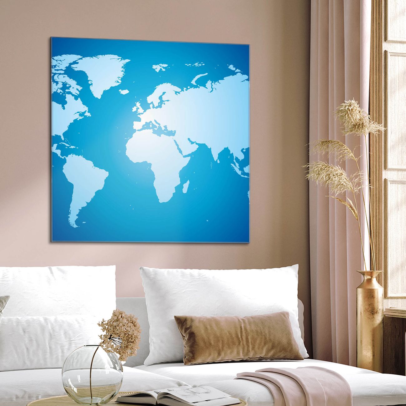 Unsere einzigartigen Glasbilder im Querformat von banjado mit Motiv Weltkarte sind der absolute Hingucker! Unsere Banjado Glasbilder sind sehr begehrt, weil sie top verarbeitet sind und sich ganz leicht montieren lassen. Schon mit wenigen Handgriffen hängen sie an der Wand und strahlen mit höchster brillianz. Durch die Ramenlose Herstellung schwebt das Echtglasbild förmlich an der Wand. Das Motiv erscheint besonders ausdrucksstark und hochwertig und ist hinter dem Echtglas geschützt.