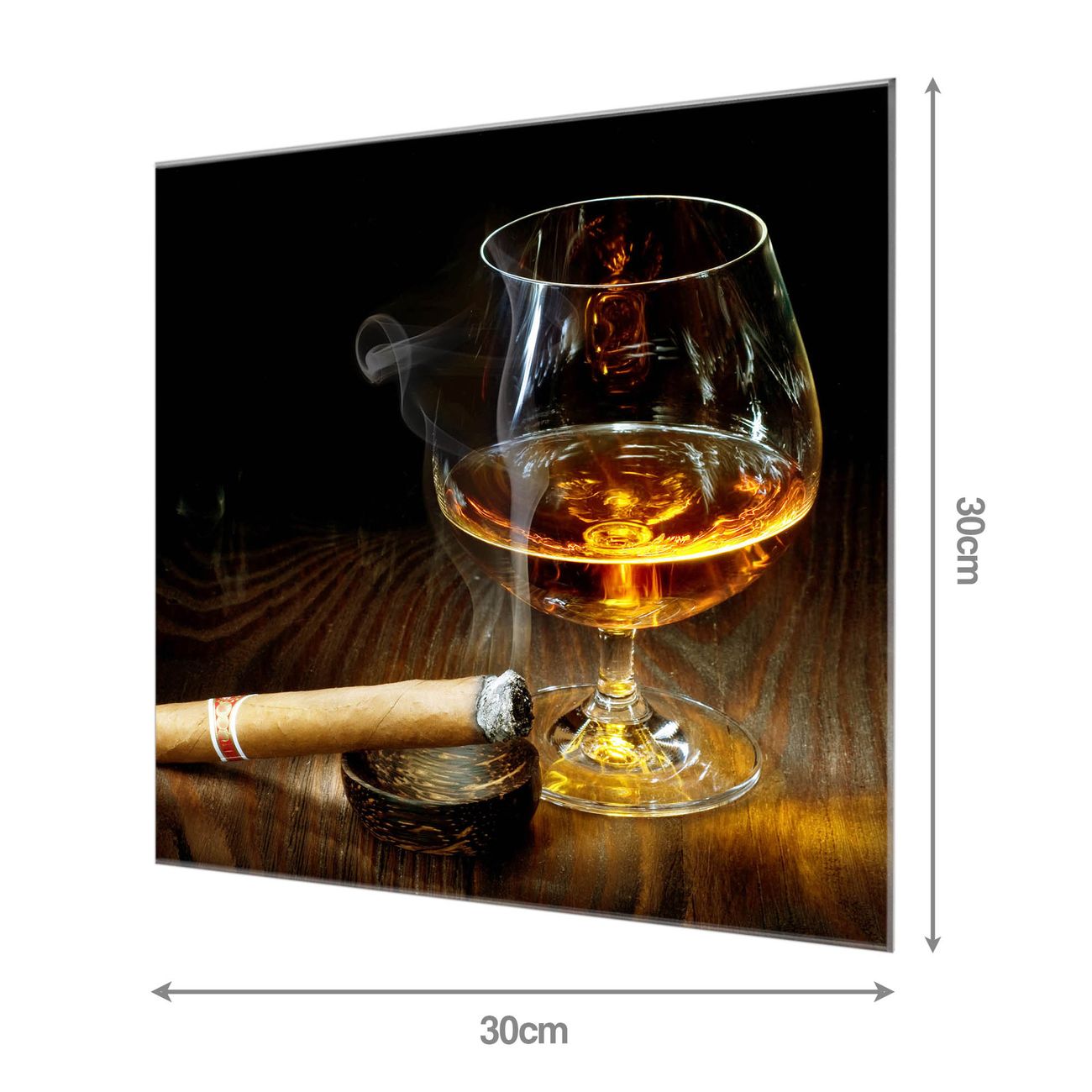 Unsere einzigartigen Glasbilder im Querformat von banjado mit Motiv Whiskey & Cigar sind der absolute Hingucker! Unsere Banjado Glasbilder sind sehr begehrt, weil sie top verarbeitet sind und sich ganz leicht montieren lassen. Schon mit wenigen Handgriffen hängen sie an der Wand und strahlen mit höchster brillianz. Durch die Ramenlose Herstellung schwebt das Echtglasbild förmlich an der Wand. Das Motiv erscheint besonders ausdrucksstark und hochwertig und ist hinter dem Echtglas geschützt.