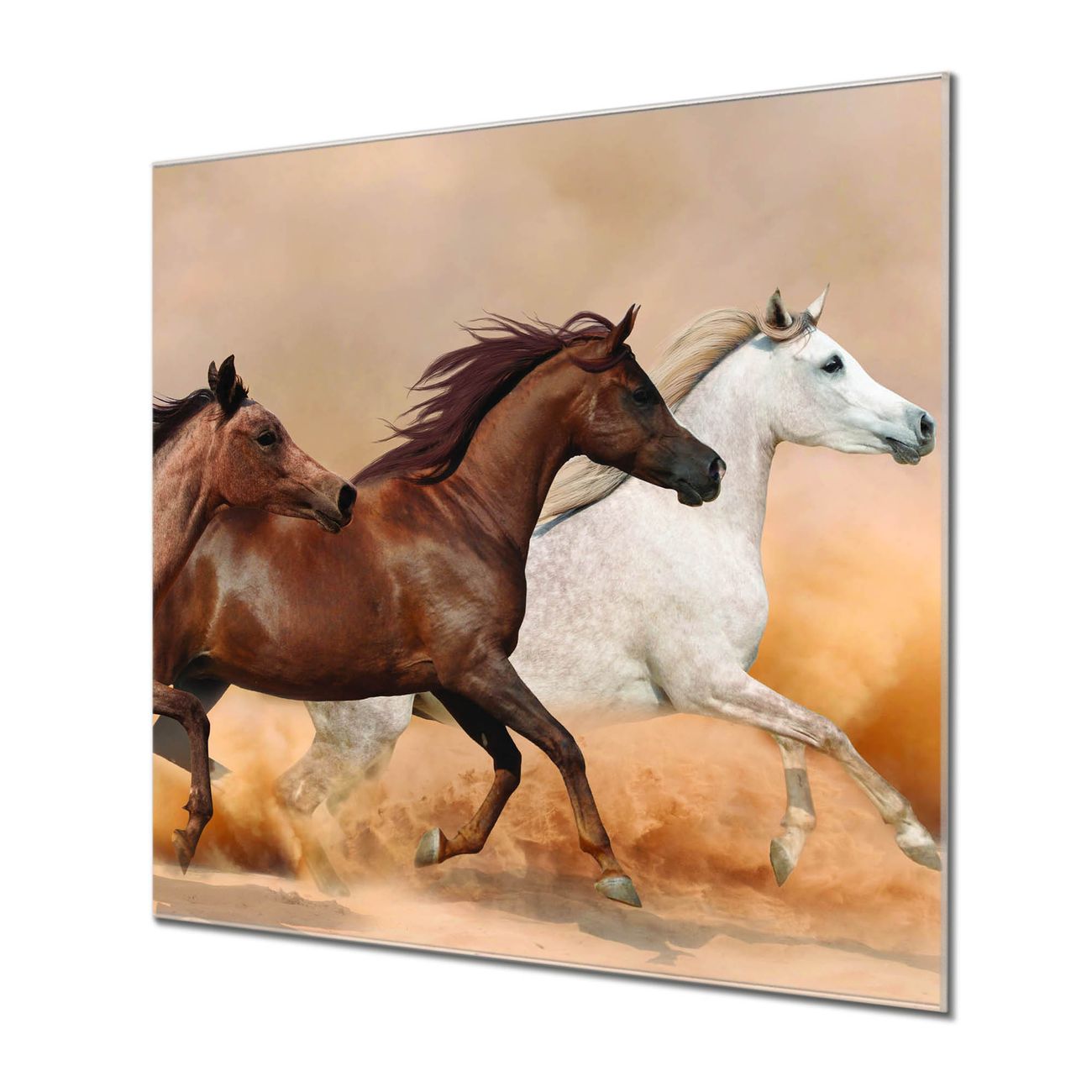 Unsere einzigartigen Glasbilder im Querformat von banjado mit Motiv Wilde Pferde sind der absolute Hingucker! Unsere Banjado Glasbilder sind sehr begehrt, weil sie top verarbeitet sind und sich ganz leicht montieren lassen. Schon mit wenigen Handgriffen hängen sie an der Wand und strahlen mit höchster brillianz. Durch die Ramenlose Herstellung schwebt das Echtglasbild förmlich an der Wand. Das Motiv erscheint besonders ausdrucksstark und hochwertig und ist hinter dem Echtglas geschützt.