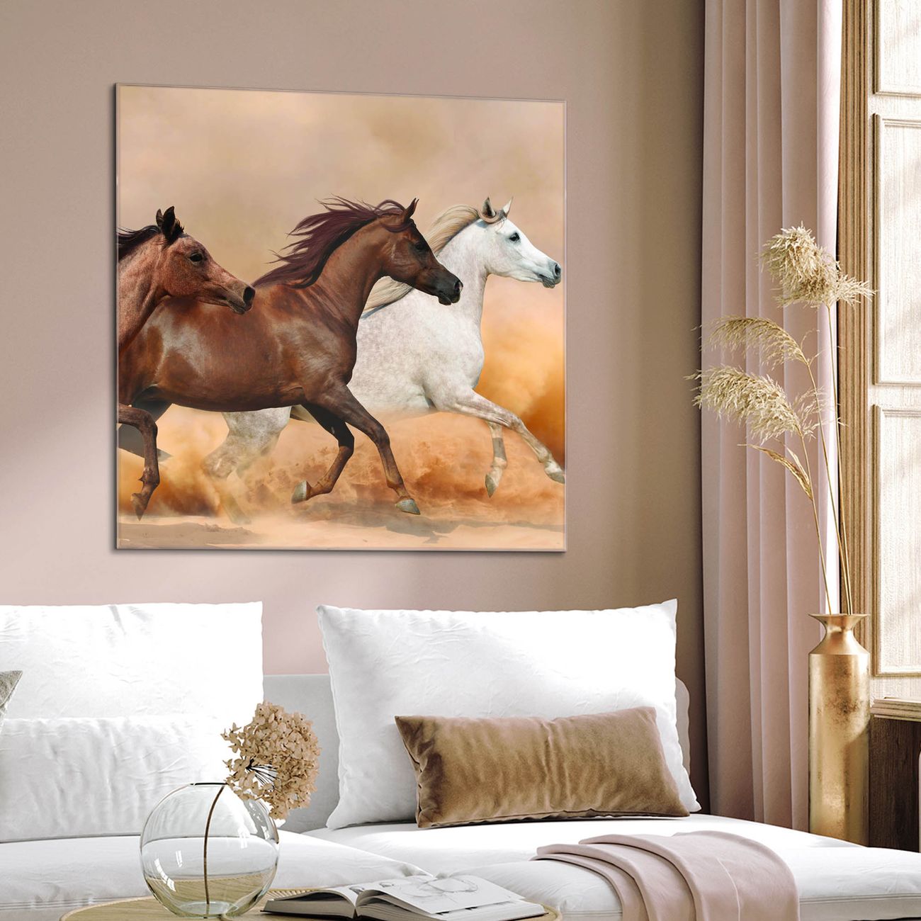 Quadratisches Wandbild aus Glas Wilde Pferde