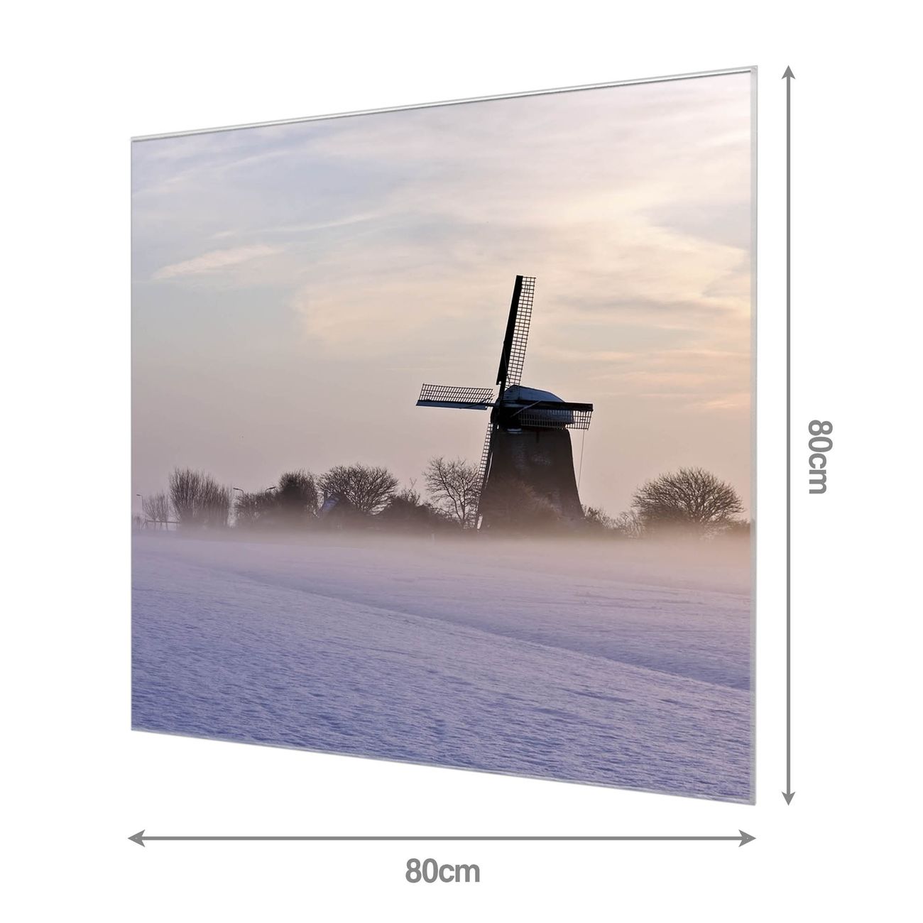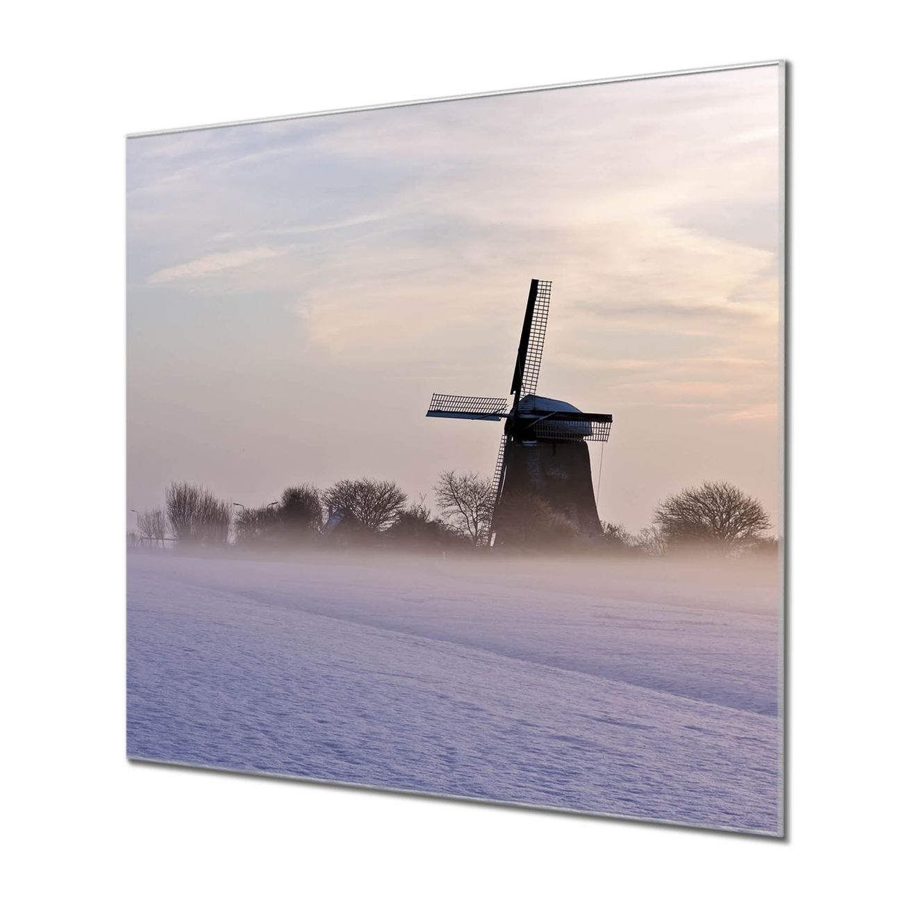Unsere einzigartigen Glasbilder im Querformat von banjado mit Motiv Windmühle im Winter sind der absolute Hingucker! Unsere Banjado Glasbilder sind sehr begehrt, weil sie top verarbeitet sind und sich ganz leicht montieren lassen. Schon mit wenigen Handgriffen hängen sie an der Wand und strahlen mit höchster brillianz. Durch die Ramenlose Herstellung schwebt das Echtglasbild förmlich an der Wand. Das Motiv erscheint besonders ausdrucksstark und hochwertig und ist hinter dem Echtglas geschützt.