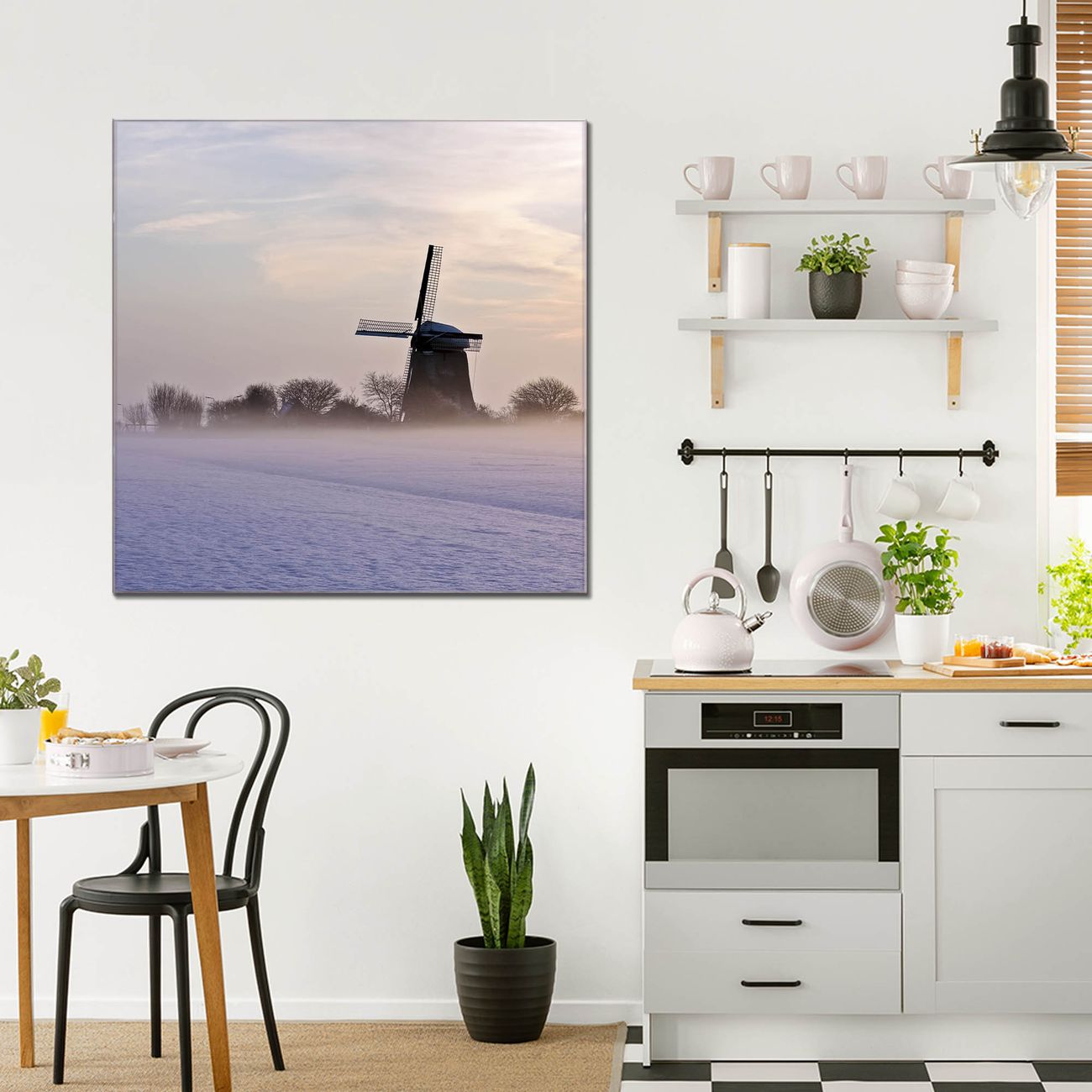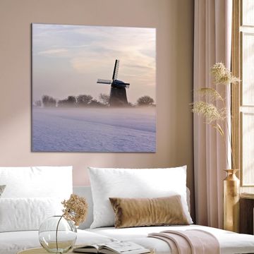 Quadratisches Wandbild aus Glas Windmühle im Winter