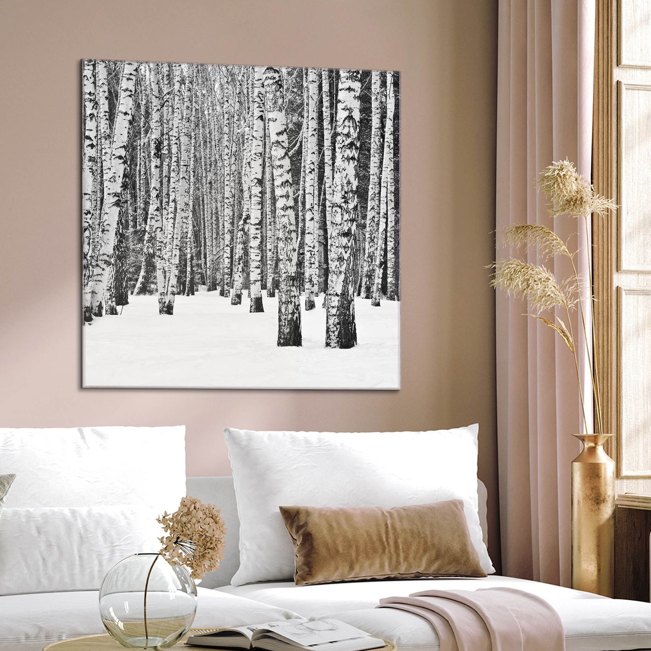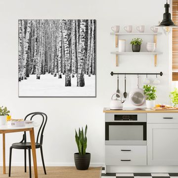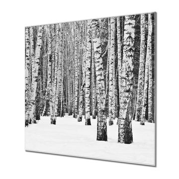 Quadratisches Wandbild aus Glas Winterlicher Birkenwald