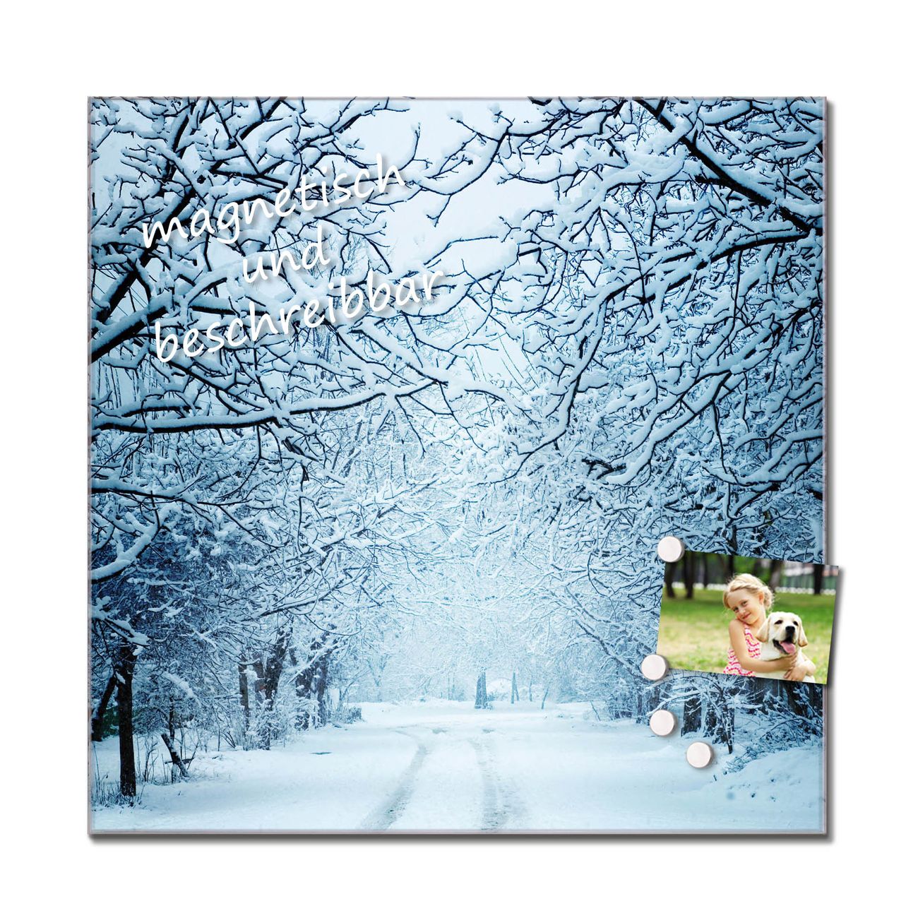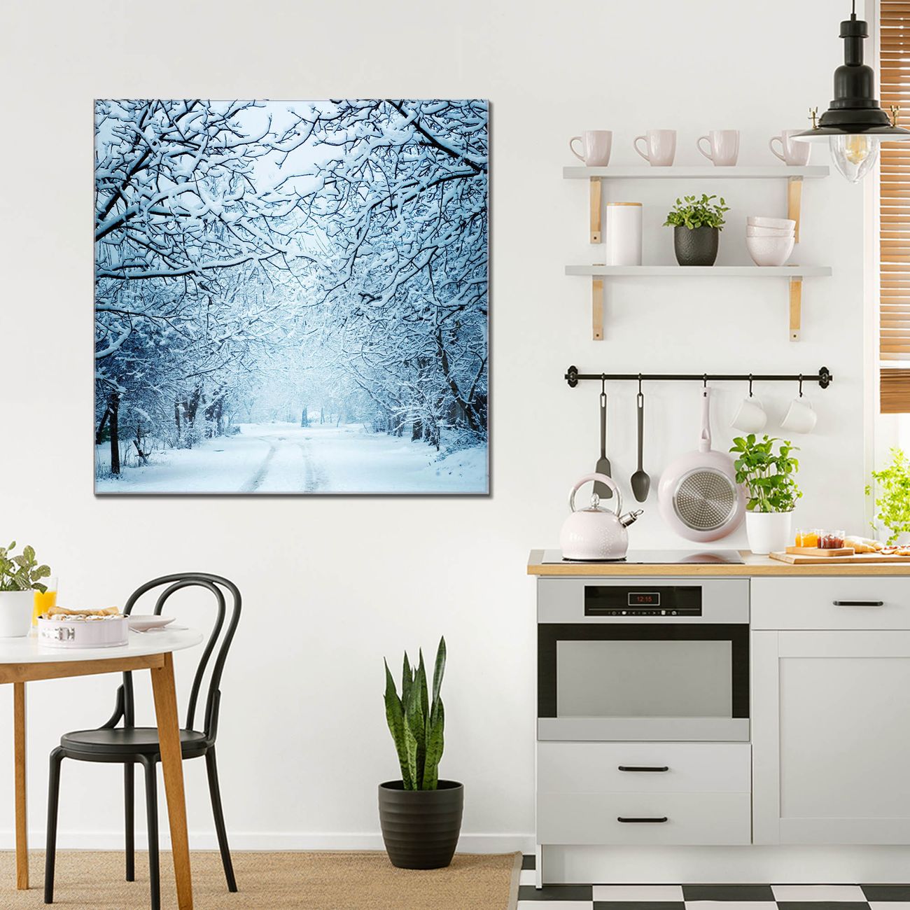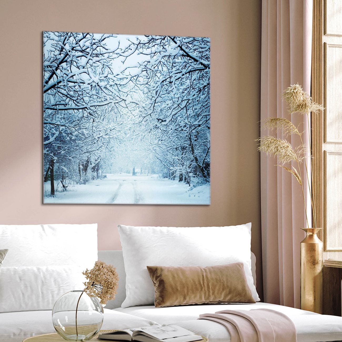 Quadratisches Wandbild aus Glas Winterspaziergang