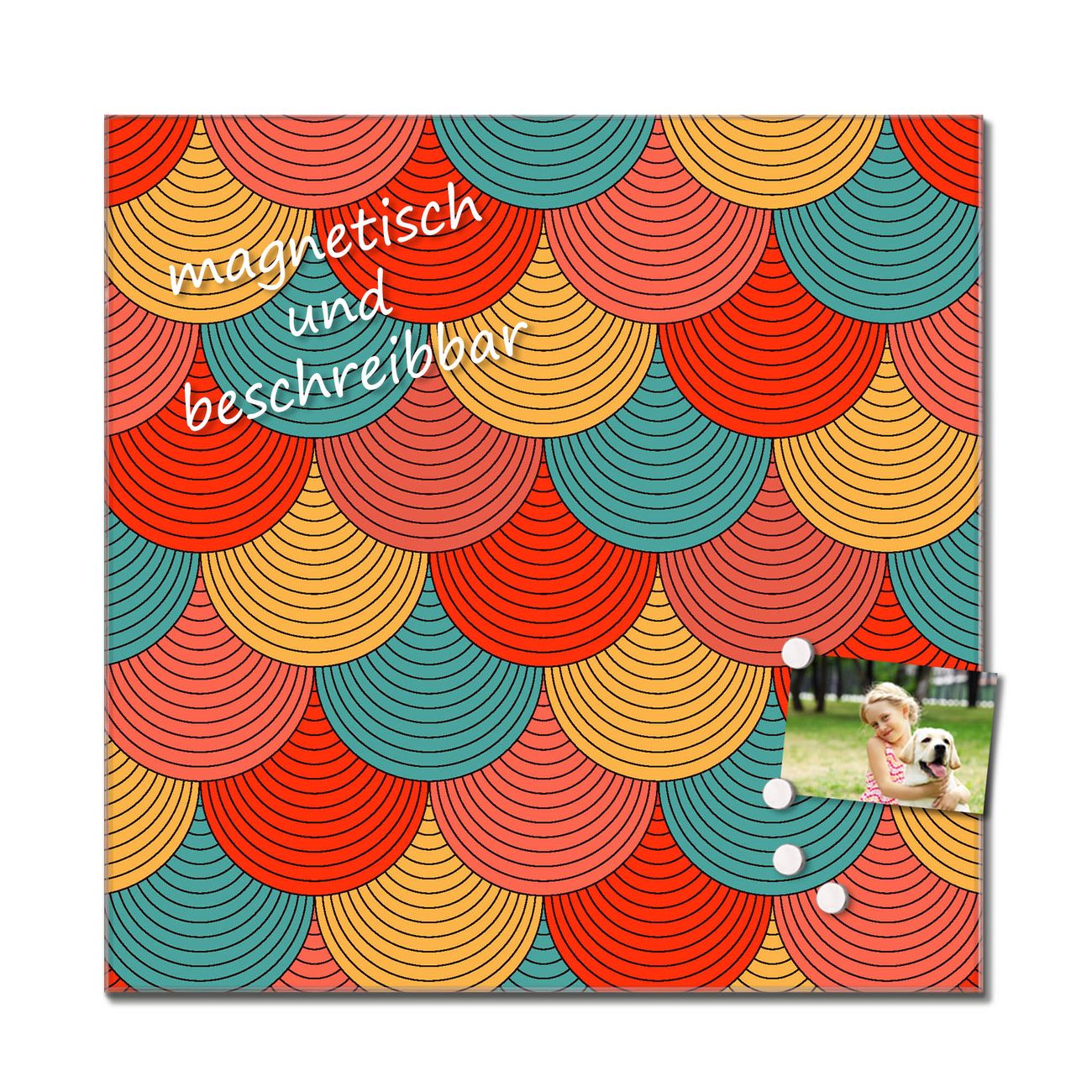 Das Glasbild besteht aus 4mm gehärtetem zertifiziertem ESG Sicherheitsglas, die Rückwand aus einem magnetischen Stahlblech. Durch die superflache Bauweise haben Sie die Wahl aus einer Vielzahl von Befestigungsmöglichkeiten. Sie können das Wandbild mit einem Montagekleber superflach an die Wand kleben oder Sie wählen eines unserer passenden Befestigungssets, welches eine optimale Montage garantiert. Durch die mitgelieferten 4 Neodym-Magnete ist Ihr Glaswandbild sofort einsatzbereit. Wir sind ein kleines Team aus dem Herzen von Sachsen und fertigen alle Artikel von Hand für Sie an. Wir entwerfen unsere Produkte selbst mit großer Liebe zum Detail.