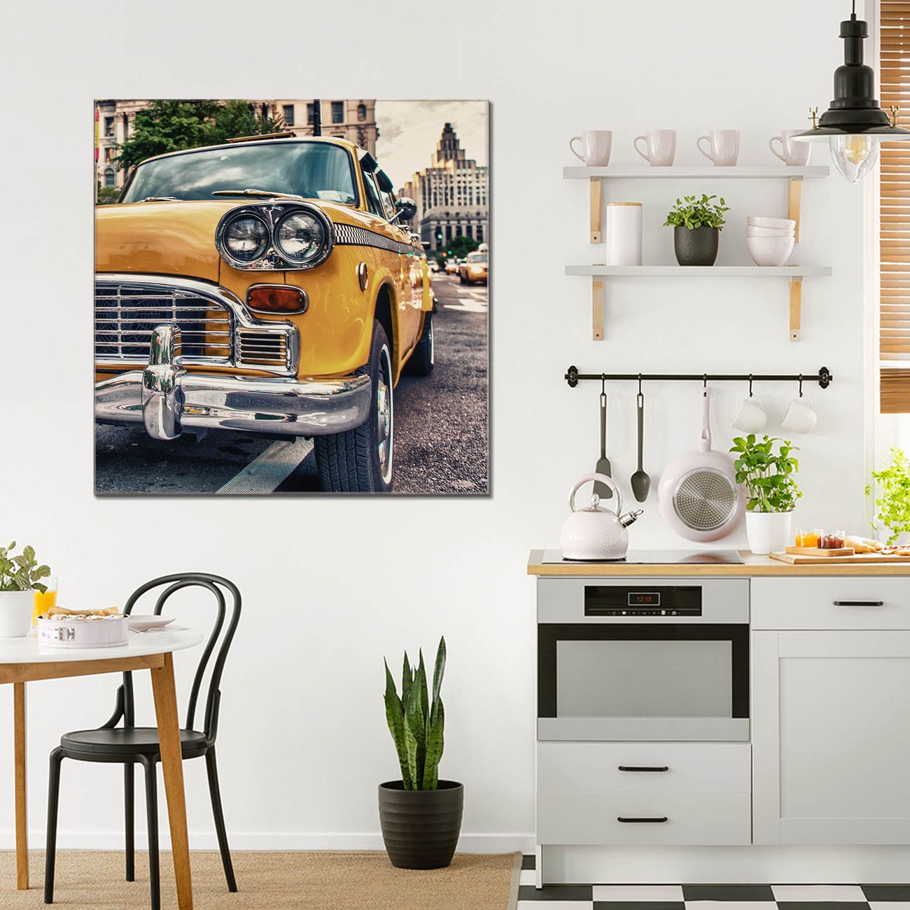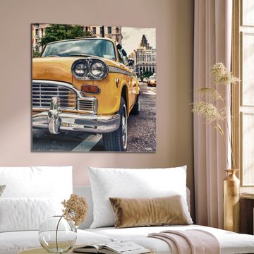 Unsere einzigartigen Glasbilder im Querformat von banjado mit Motiv Yellow Cab sind der absolute Hingucker! Unsere Banjado Glasbilder sind sehr begehrt, weil sie top verarbeitet sind und sich ganz leicht montieren lassen. Schon mit wenigen Handgriffen hängen sie an der Wand und strahlen mit höchster brillianz. Durch die Ramenlose Herstellung schwebt das Echtglasbild förmlich an der Wand. Das Motiv erscheint besonders ausdrucksstark und hochwertig und ist hinter dem Echtglas geschützt.