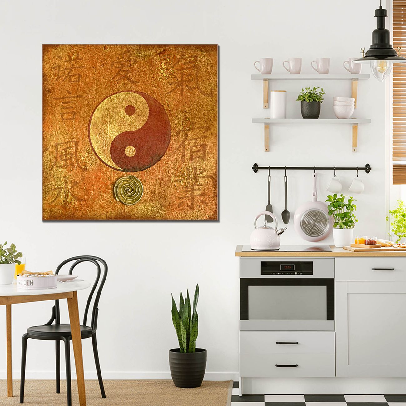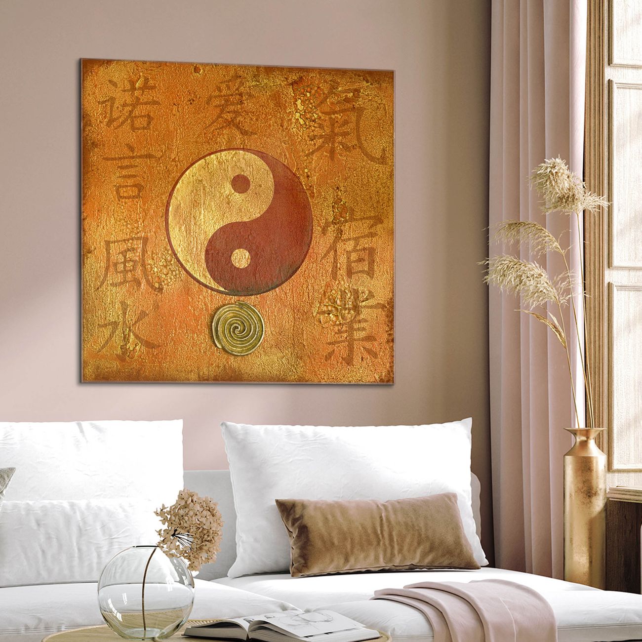 Quadratisches Wandbild aus Glas Yin Yang