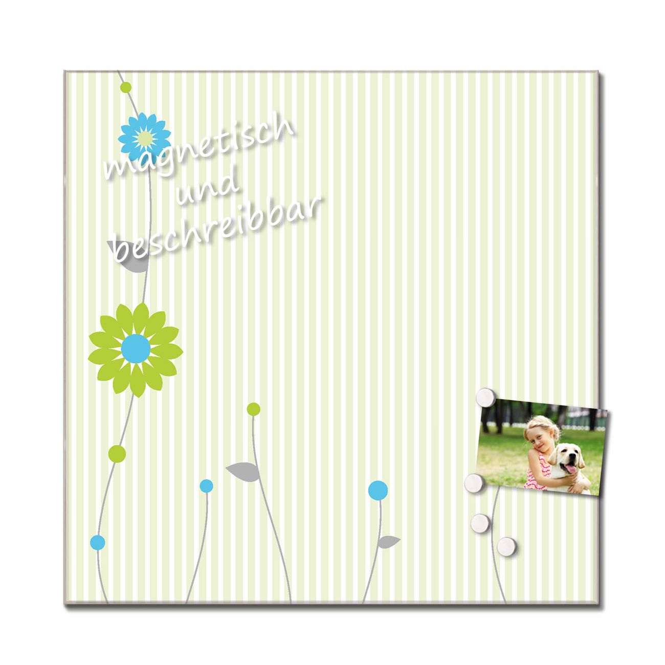 Das Glasbild besteht aus 4mm gehärtetem zertifiziertem ESG Sicherheitsglas, die Rückwand aus einem magnetischen Stahlblech. Durch die superflache Bauweise haben Sie die Wahl aus einer Vielzahl von Befestigungsmöglichkeiten. Sie können das Wandbild mit einem Montagekleber superflach an die Wand kleben oder Sie wählen eines unserer passenden Befestigungssets, welches eine optimale Montage garantiert. Durch die mitgelieferten 4 Neodym-Magnete ist Ihr Glaswandbild sofort einsatzbereit. Wir sind ein kleines Team aus dem Herzen von Sachsen und fertigen alle Artikel von Hand für Sie an. Wir entwerfen unsere Produkte selbst mit großer Liebe zum Detail.