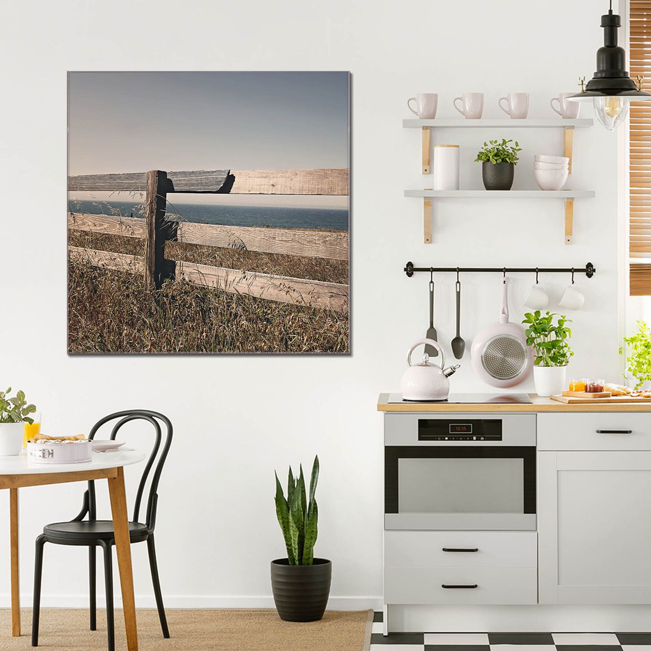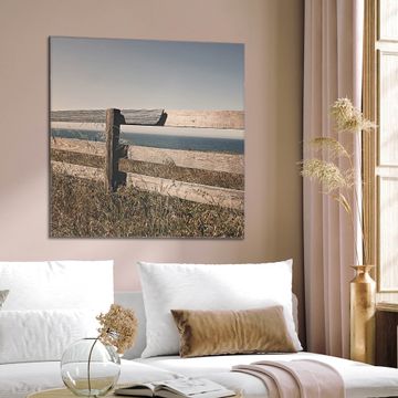 Quadratisches Wandbild aus Glas Zaun am Meer