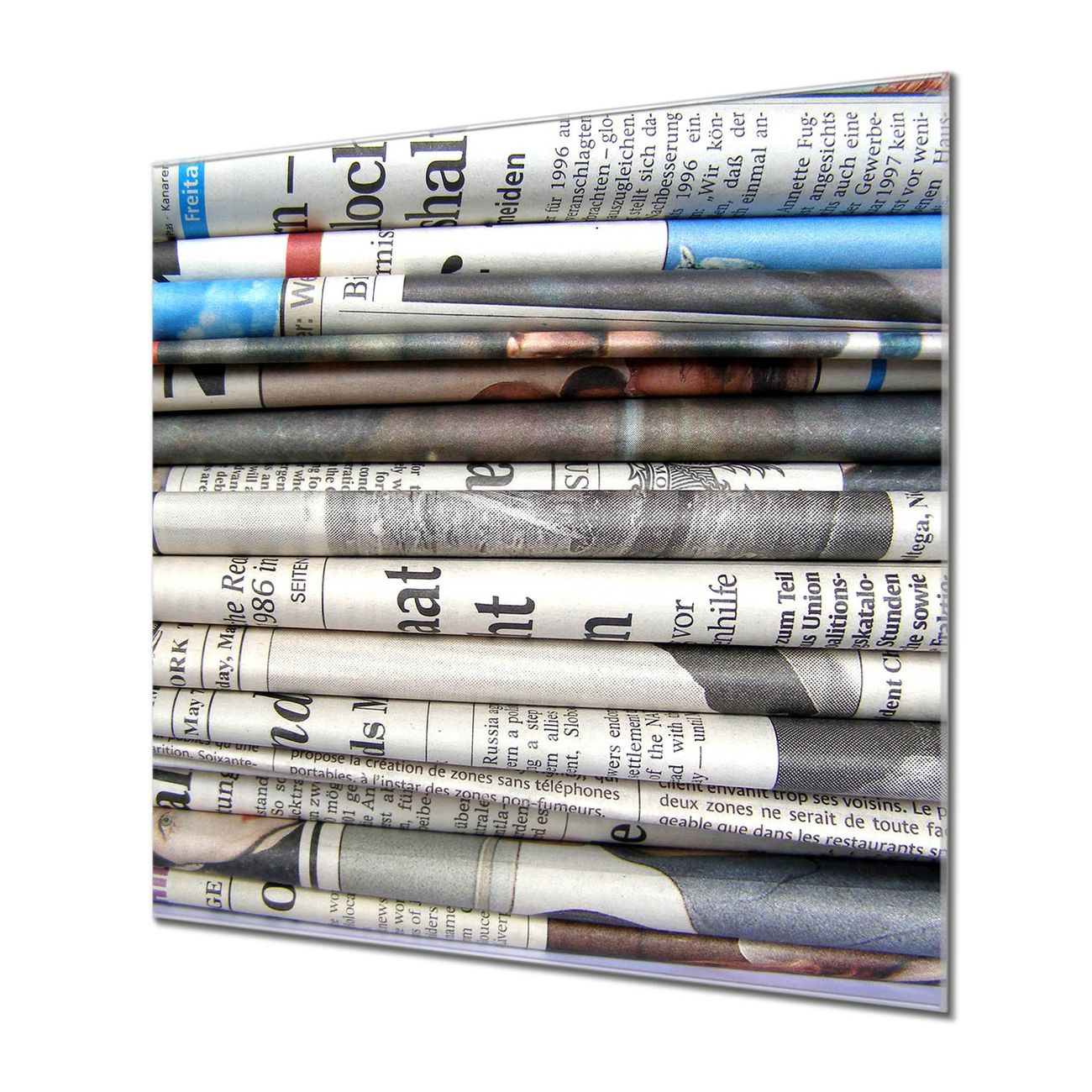 Unsere einzigartigen Glasbilder im Querformat von banjado mit Motiv Zeitungen sind der absolute Hingucker! Unsere Banjado Glasbilder sind sehr begehrt, weil sie top verarbeitet sind und sich ganz leicht montieren lassen. Schon mit wenigen Handgriffen hängen sie an der Wand und strahlen mit höchster brillianz. Durch die Ramenlose Herstellung schwebt das Echtglasbild förmlich an der Wand. Das Motiv erscheint besonders ausdrucksstark und hochwertig und ist hinter dem Echtglas geschützt.