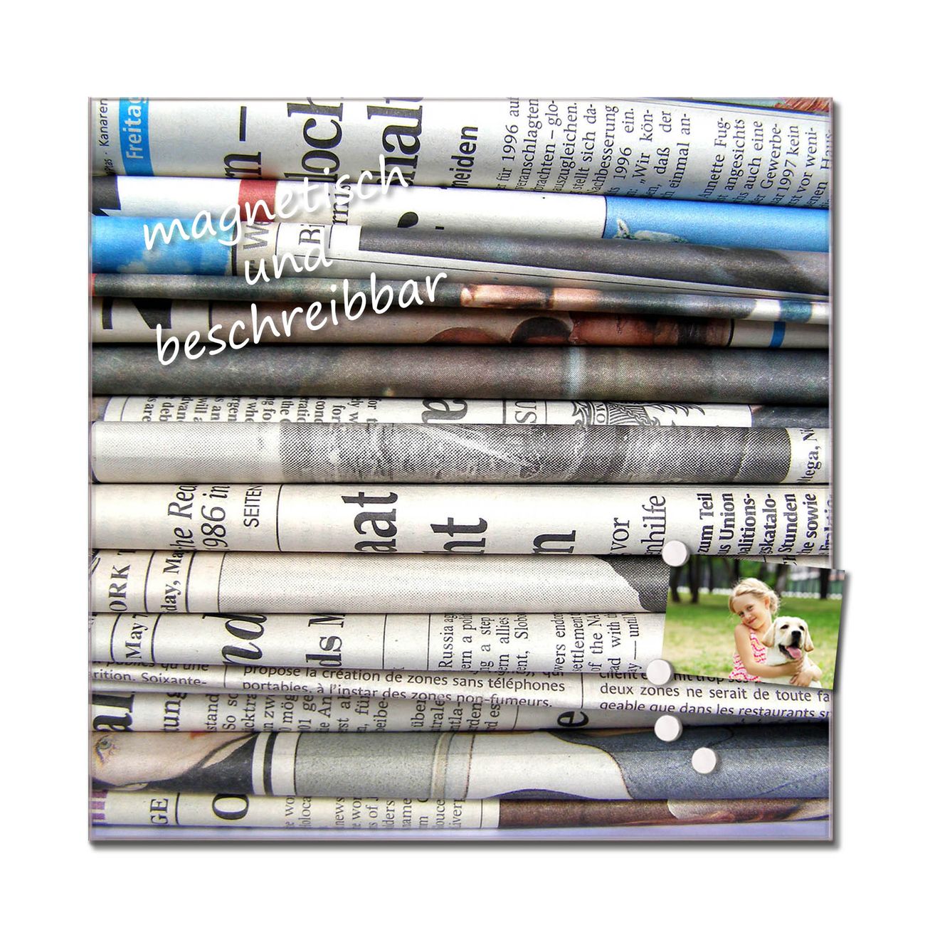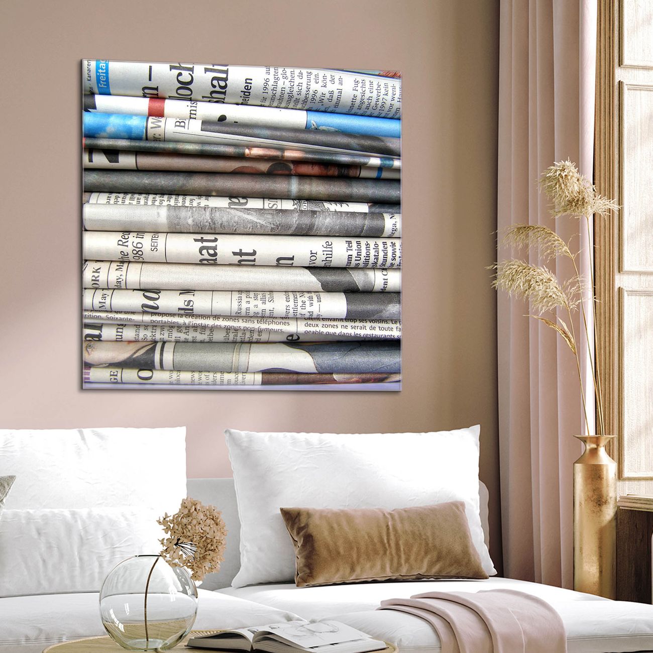 Quadratisches Wandbild aus Glas Zeitungen