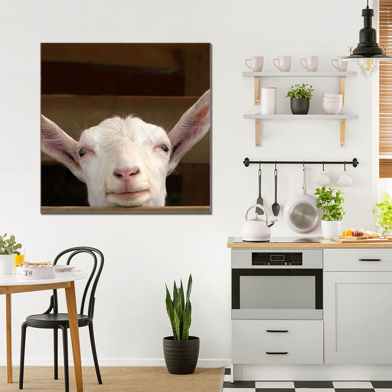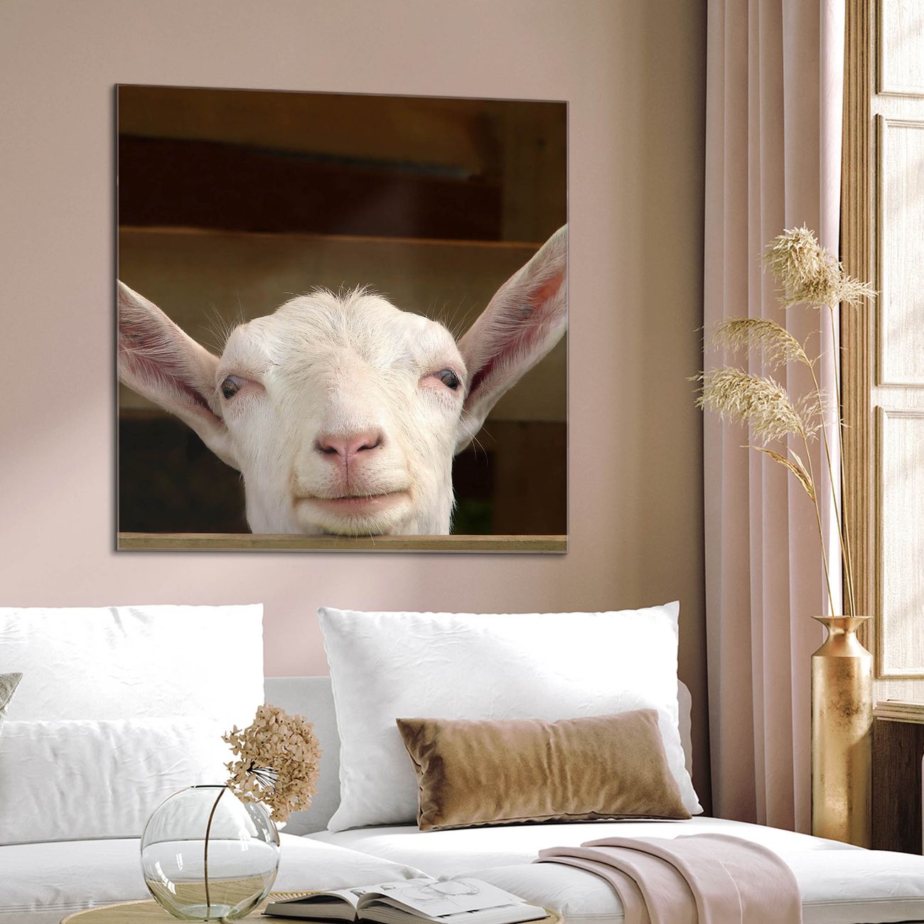 Unsere einzigartigen Glasbilder im Querformat von banjado mit Motiv Ziege sind der absolute Hingucker! Unsere Banjado Glasbilder sind sehr begehrt, weil sie top verarbeitet sind und sich ganz leicht montieren lassen. Schon mit wenigen Handgriffen hängen sie an der Wand und strahlen mit höchster brillianz. Durch die Ramenlose Herstellung schwebt das Echtglasbild förmlich an der Wand. Das Motiv erscheint besonders ausdrucksstark und hochwertig und ist hinter dem Echtglas geschützt.