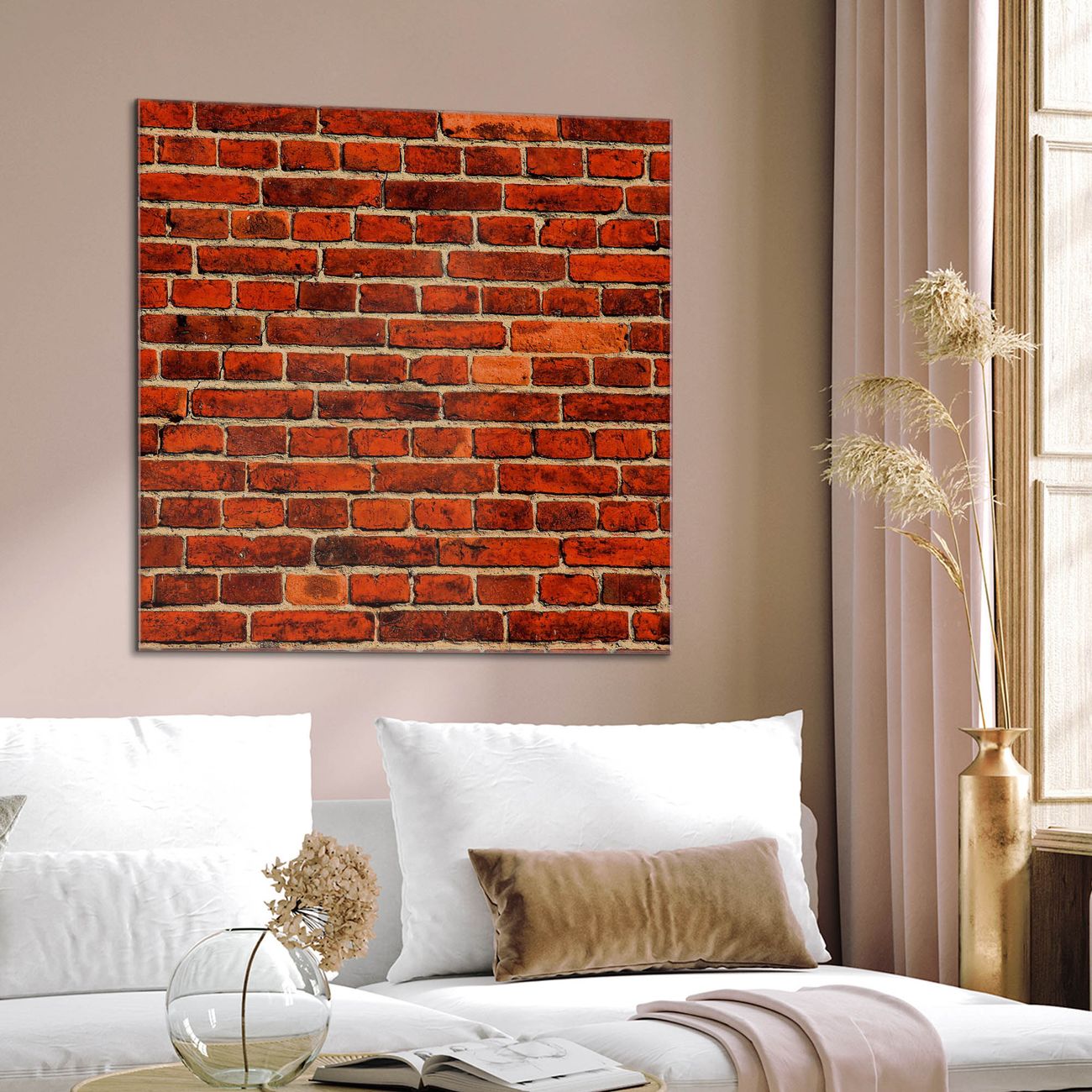 Quadratisches Wandbild aus Glas Ziegelwand