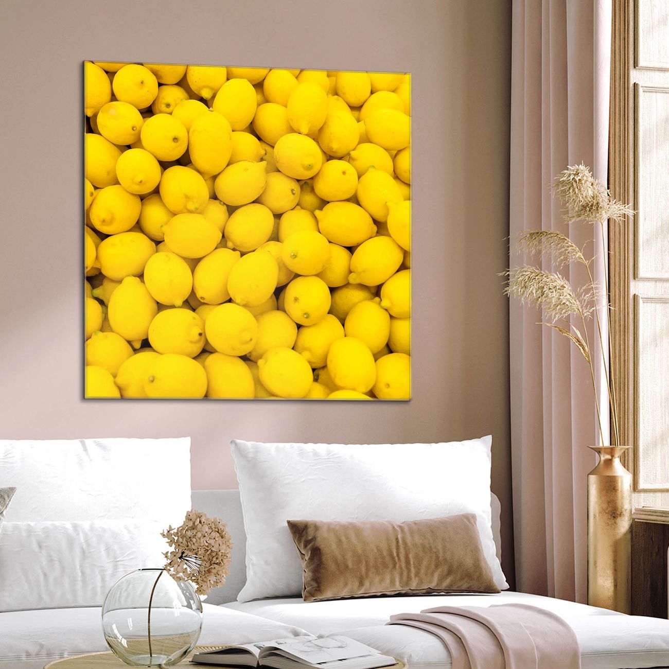 Quadratisches Wandbild aus Glas Zitronen