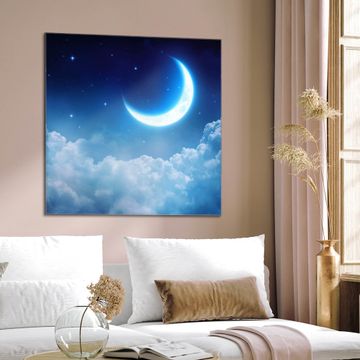 Quadratisches Wandbild aus Glas zunehmender Mond