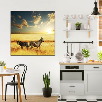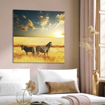 Quadratisches Wandbild aus Glas Zwei Zebras