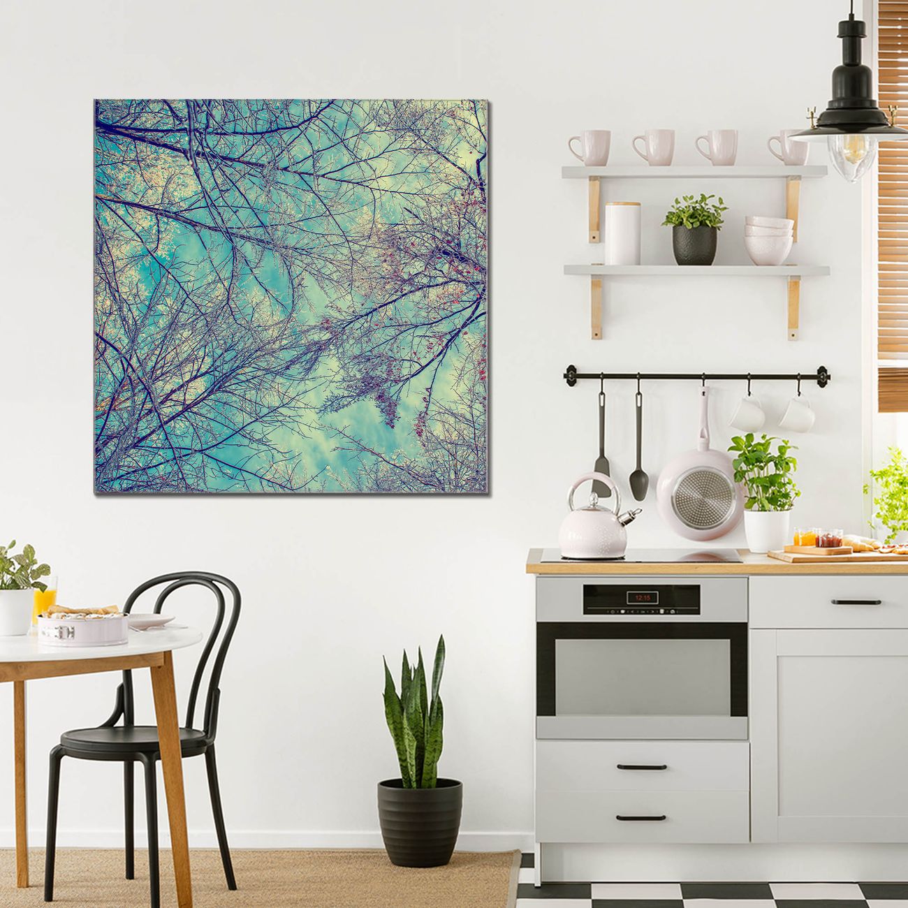 Quadratisches Wandbild aus Glas Zwischen Bäumen 8