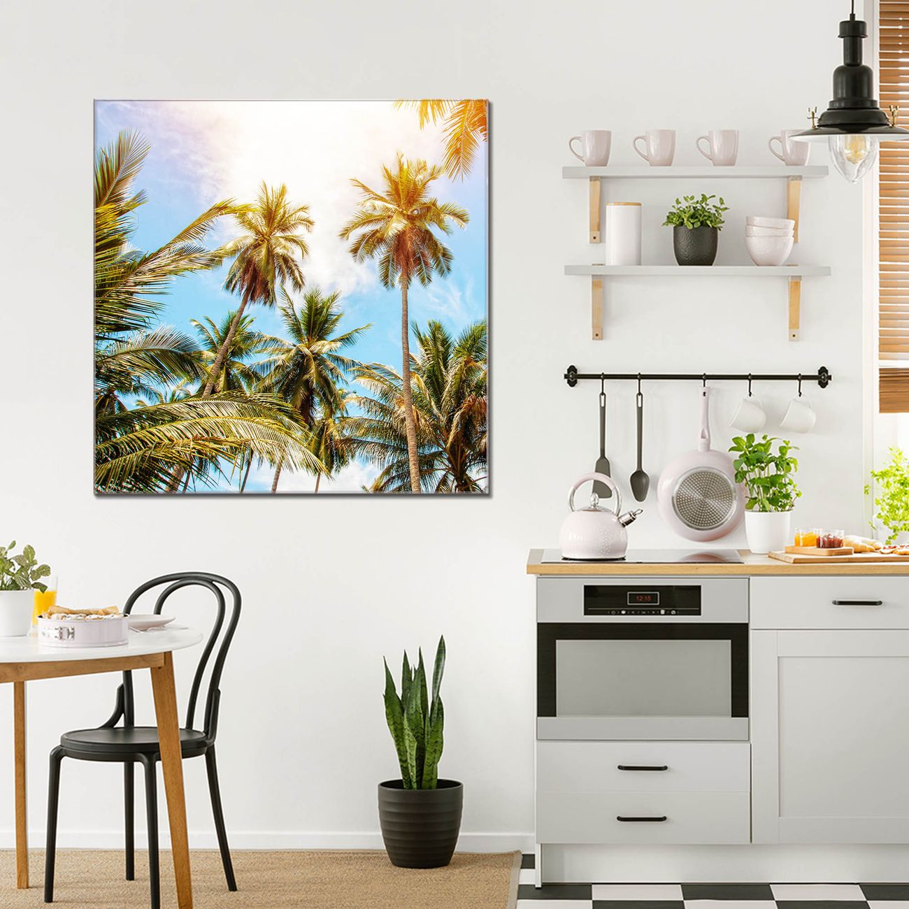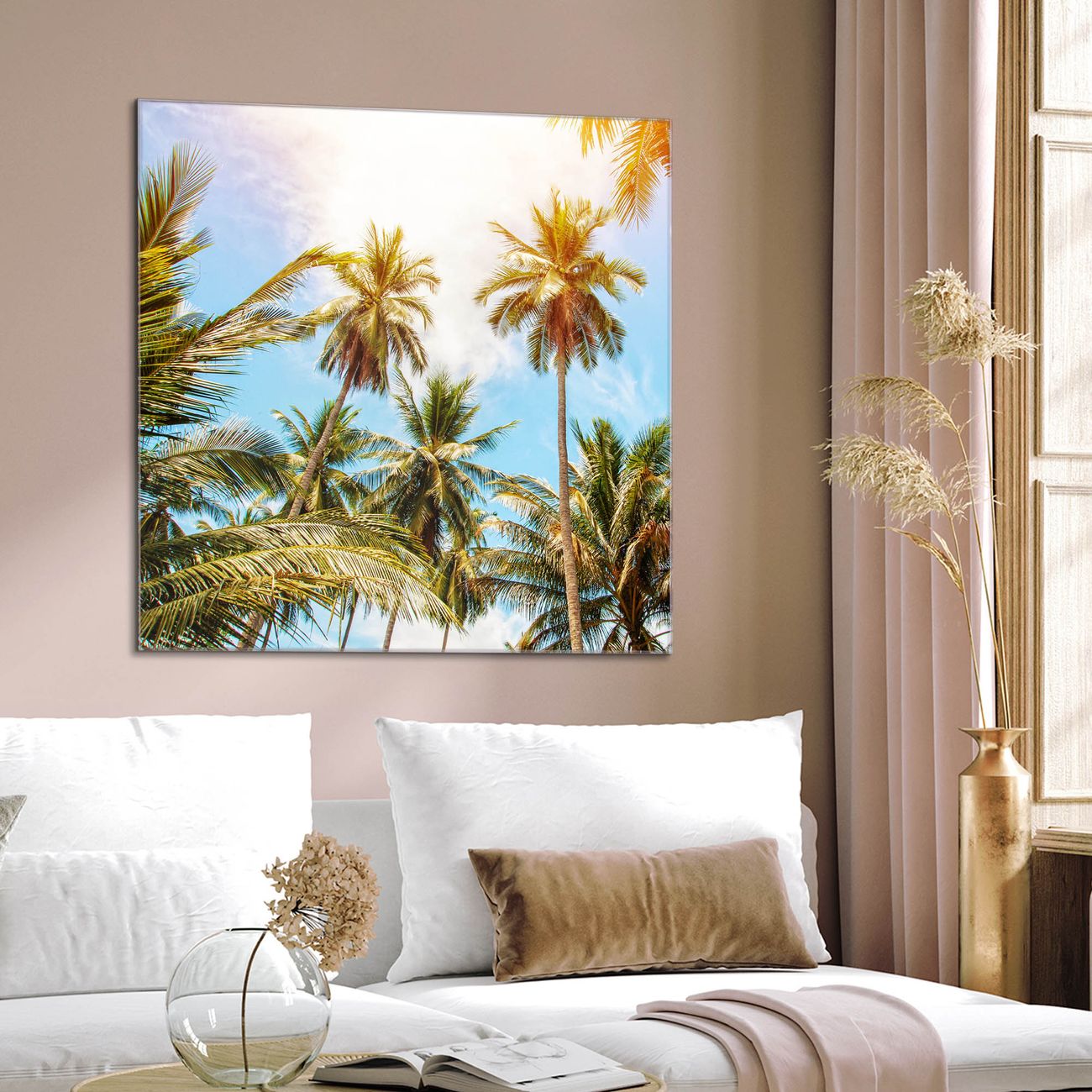 Quadratisches Wandbild aus Glas Zwischen Palmen