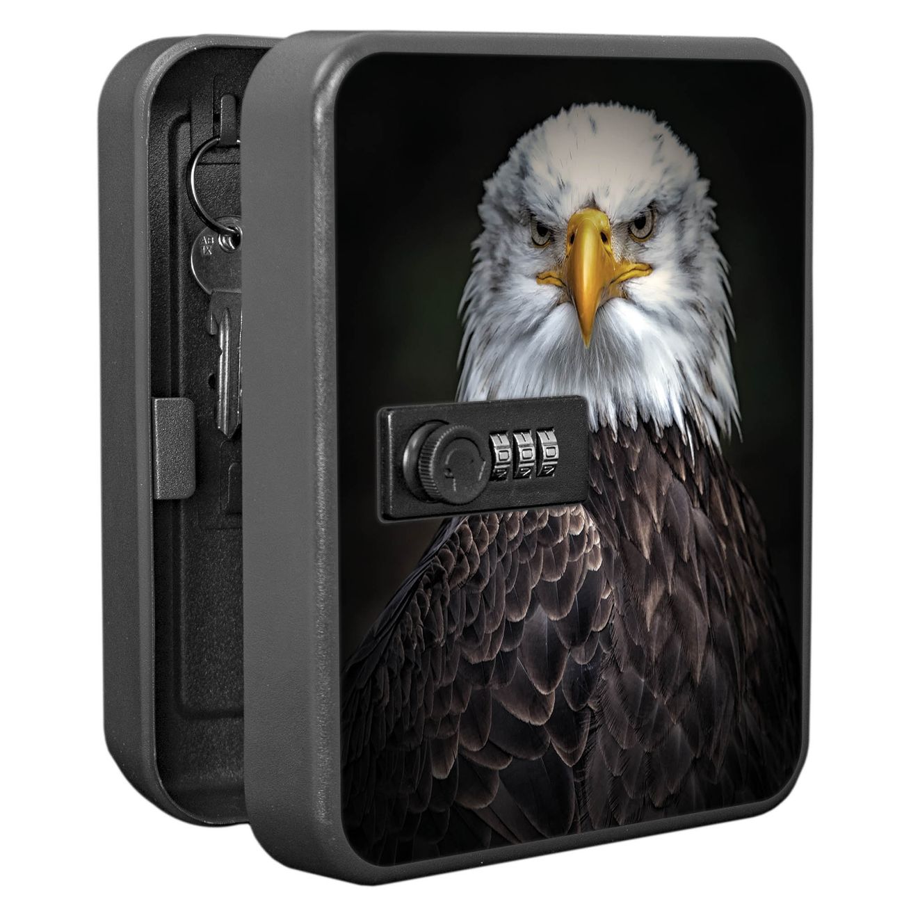 Der Schlüsselkasten ist gesamt 20x16x9,3cm groß und wiegt ca. 900g. Die komplette Schlüsselaufbewahrung besteht aus schwarzem pulverbeschichtetem Stahl und wird von uns auf der Front mit einer Motivfolie kaschiert.