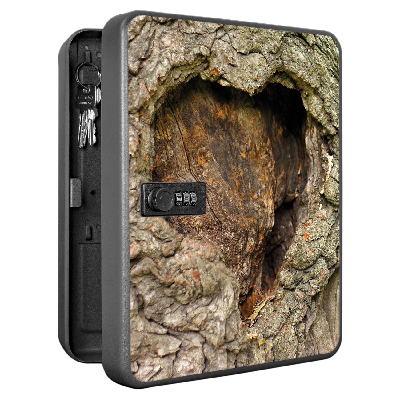 Der Schlüsselkasten ist gesamt 30x24x9,3cm groß und wiegt ca. 1500g. Die komplette Schlüsselaufbewahrung besteht aus schwarzem pulverbeschichtetem Stahl und wird von uns auf der Front mit einer Motivfolie kaschiert.