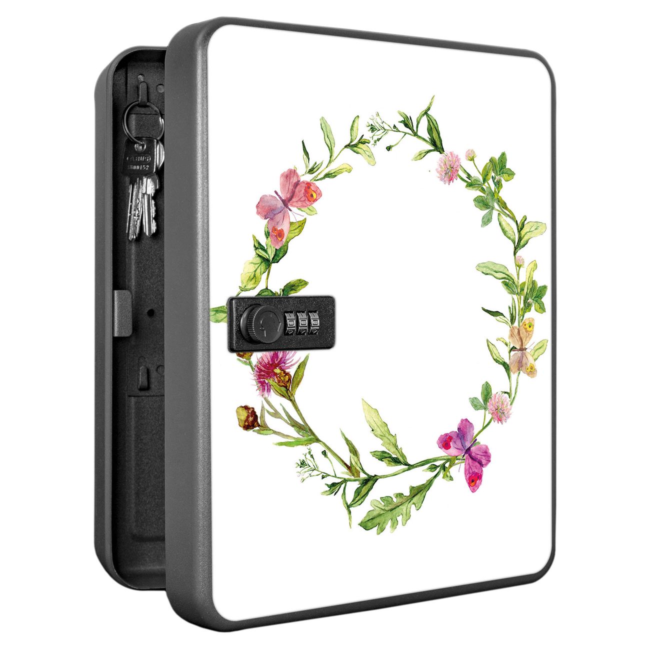 Schlüsselkasten abschließbar Motiv Aquarell Blumenring