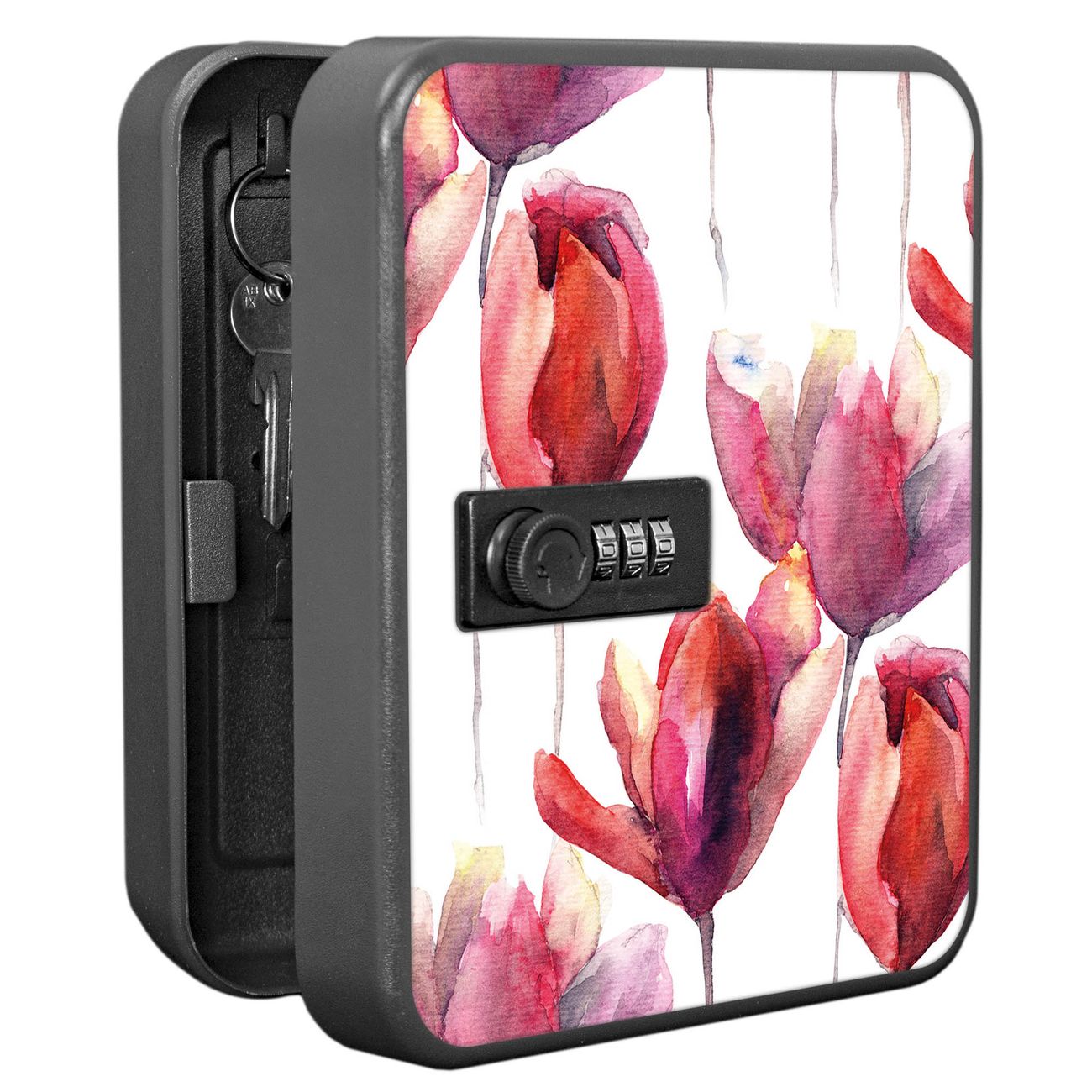 Schlüsselkasten abschließbar Motiv Aquarell Tulpen