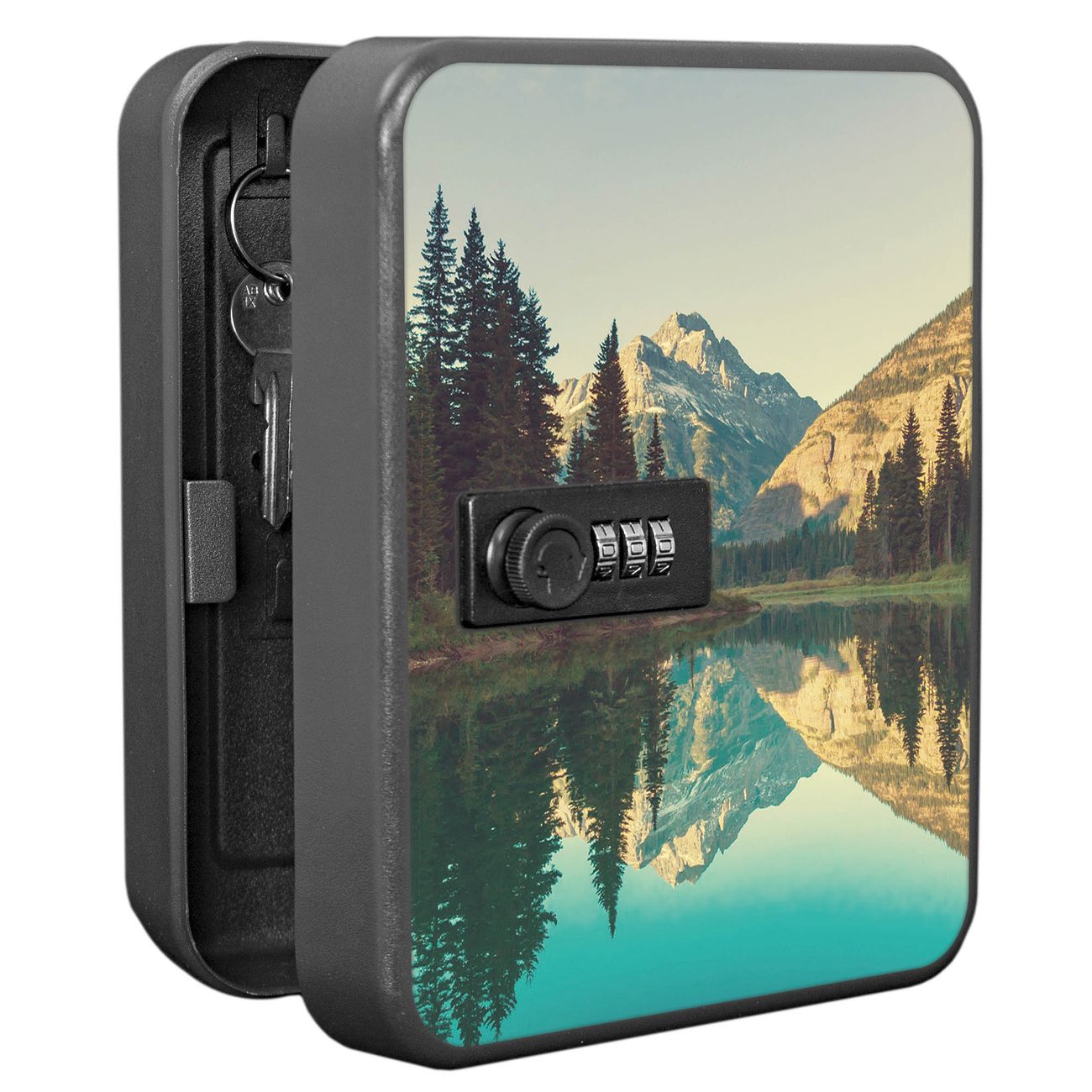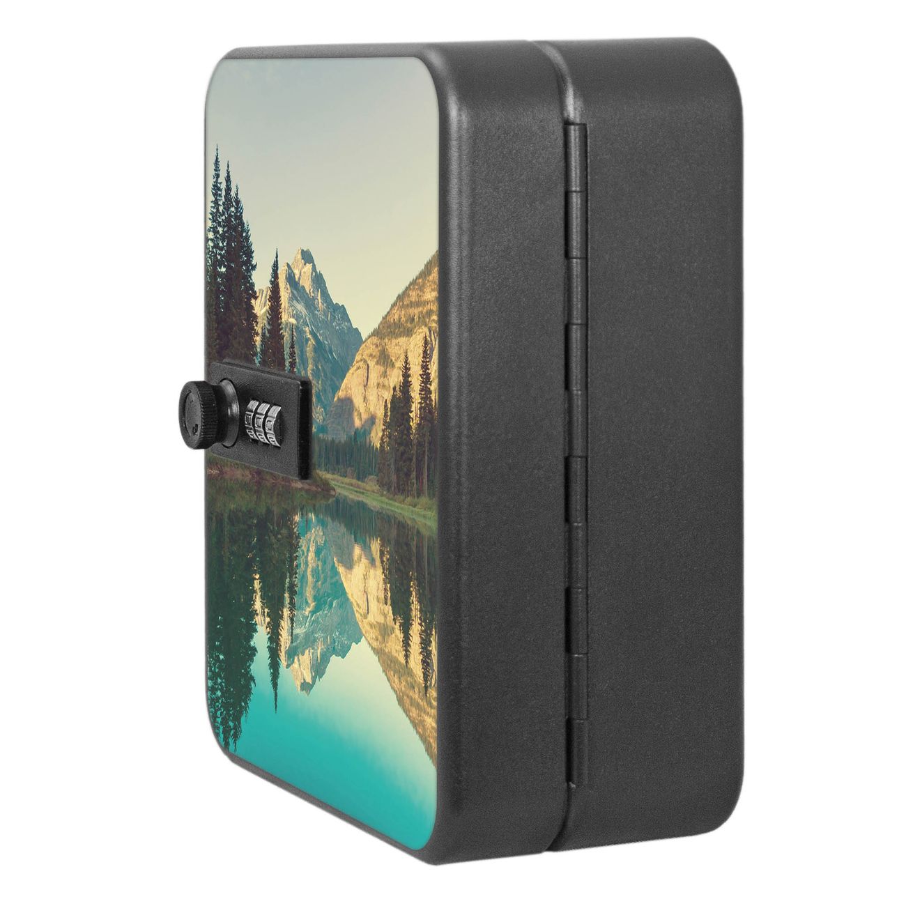 Der Schlüsselkasten ist gesamt 20x16x9,3cm groß und wiegt ca. 900g. Die komplette Schlüsselaufbewahrung besteht aus schwarzem pulverbeschichtetem Stahl und wird von uns auf der Front mit einer Motivfolie kaschiert.