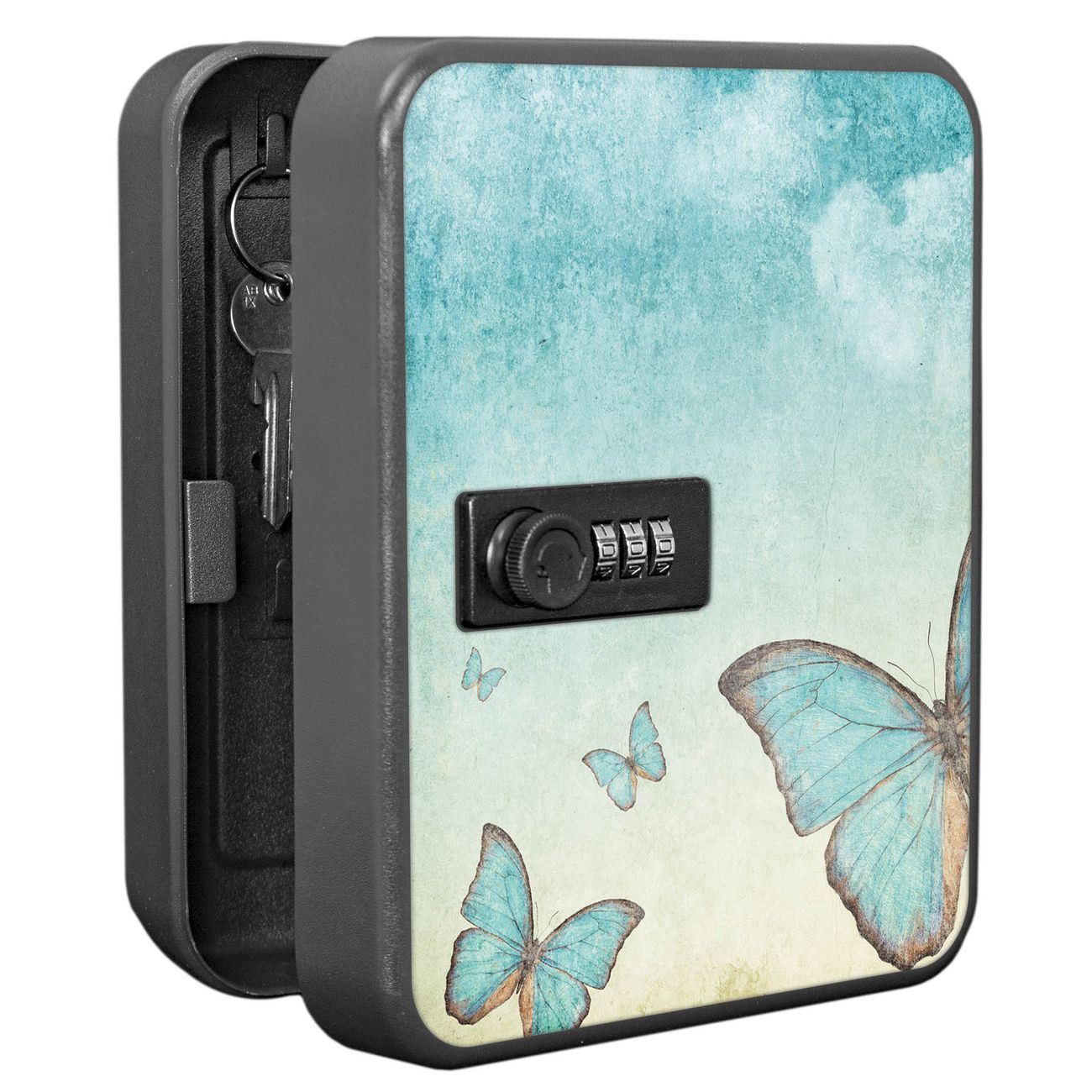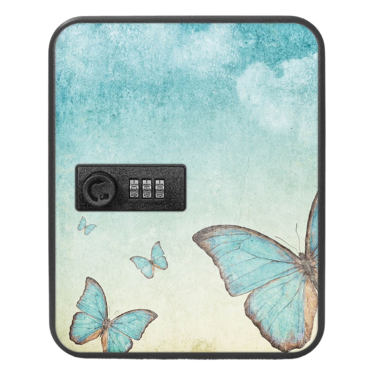 Schlüsselkasten abschließbar Motiv Blaue Schmetterlinge